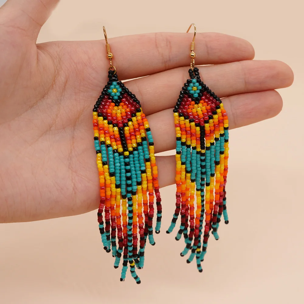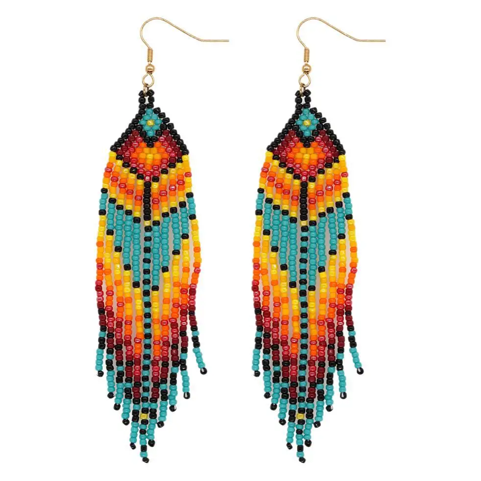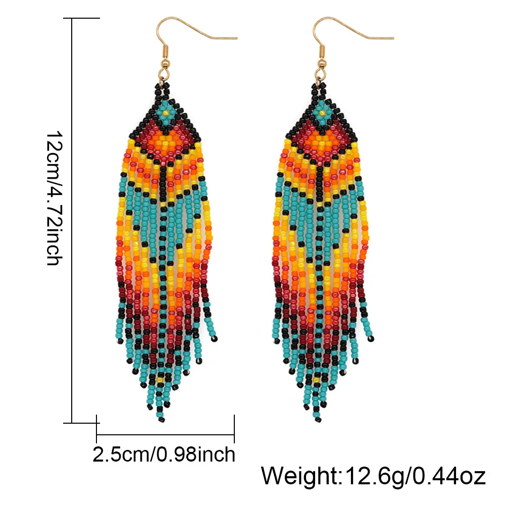 12cm/4.72in - Handcrafted, Colorful, Western-Inspired Jewelry with Tassels Boho Style Colorful Seed Bead Earrings