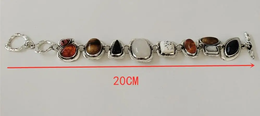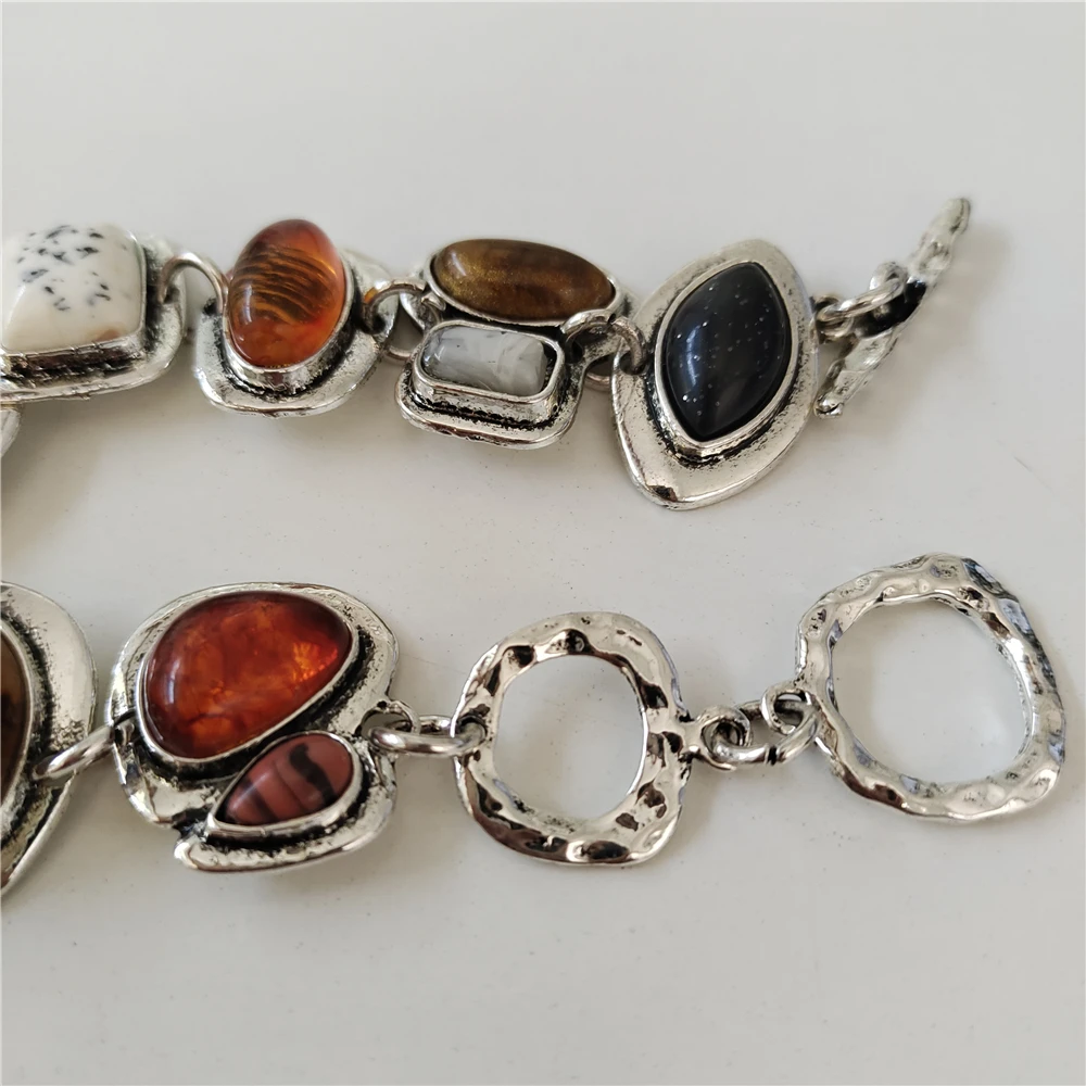 2025 New Indian Ethnic Vintage Resin Bracelets Women Trend Silver Plated Metal Hollow Link Charm Statement Bracelets Jewelry