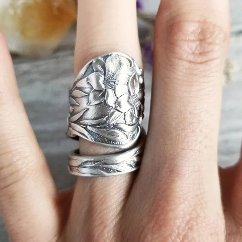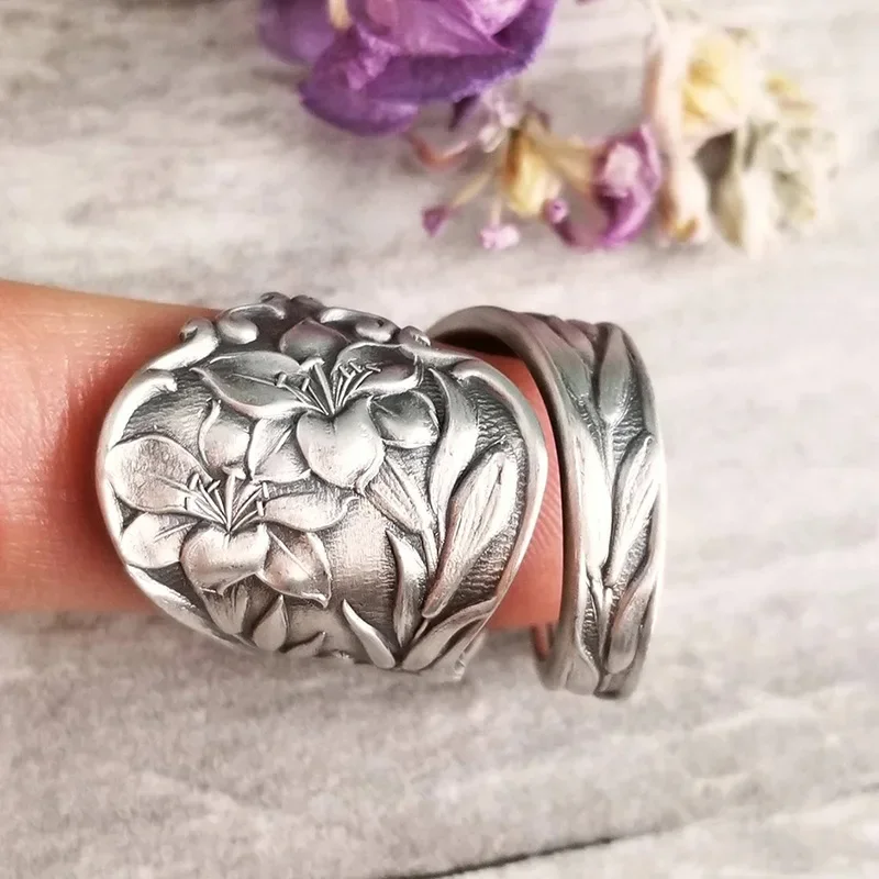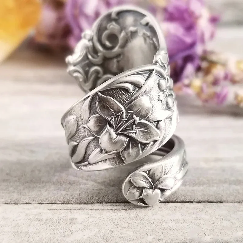 2025 New Retro Open Peony Flower Ring Women's Jewelry Fashion and Simplicity Vintage Wholesale
