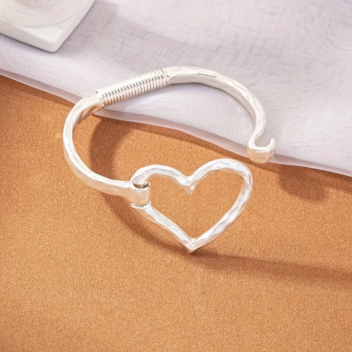 6.5cm/2.56 in Boho Chic Buckle Heart Cuff Bangle Bracelet in Zinc Alloy Sweet Heart Love Statement Bracelet for Mother's Day