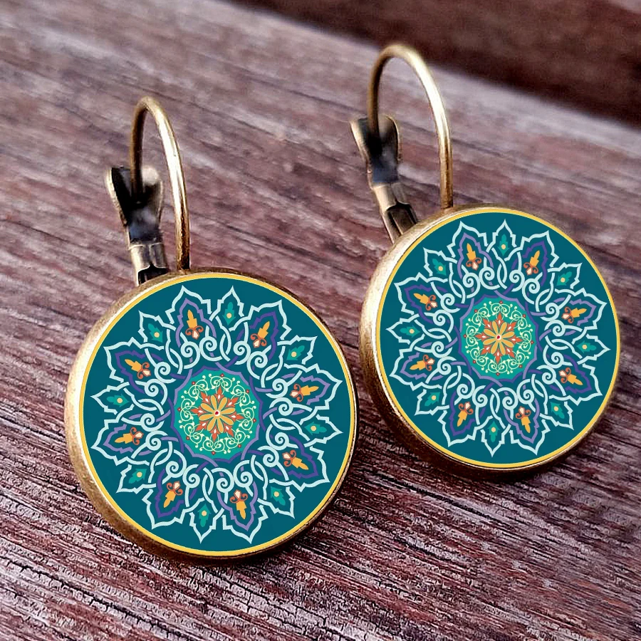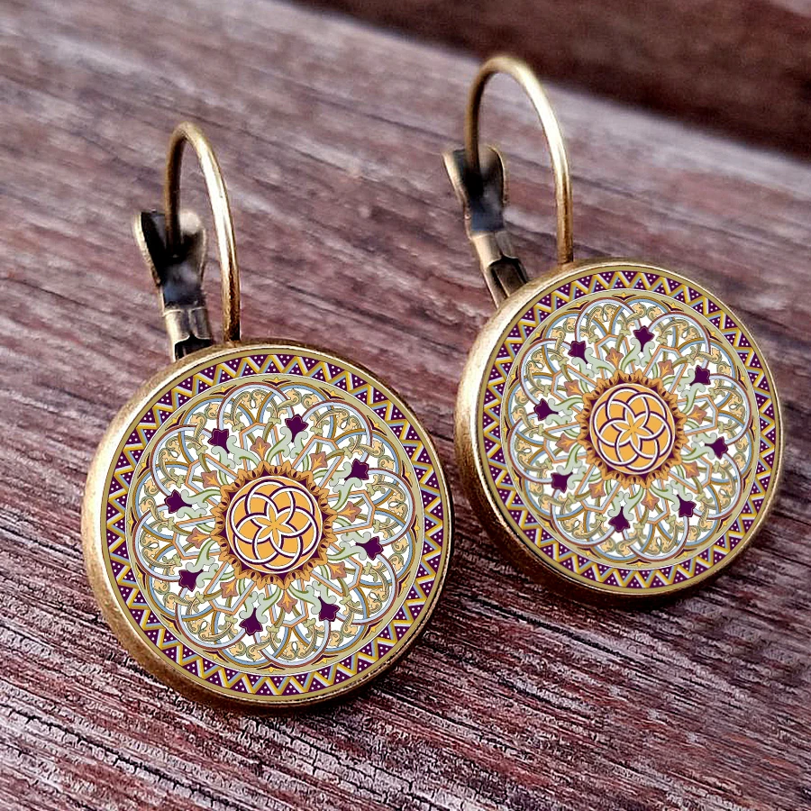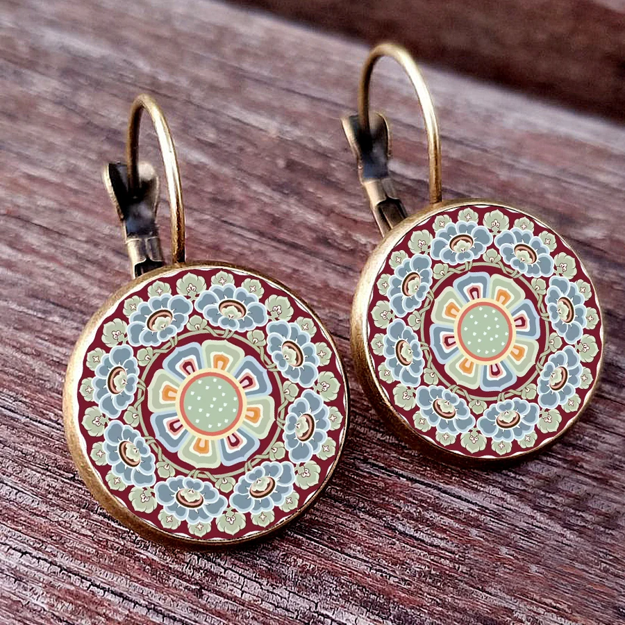 - 2023 Ancient pattern grotto art glass dome round pendant earrings for women, mysterious vintage pattern art earrings for women gifts