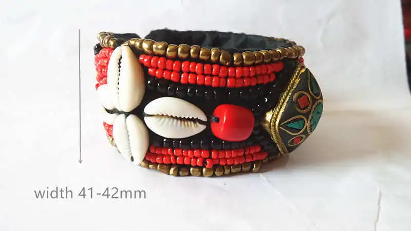 BB-168 Tibetan Fashion Open Cuff Bangle Tibet Ethnic Hand Sewed Shells Bohemian Bangle
