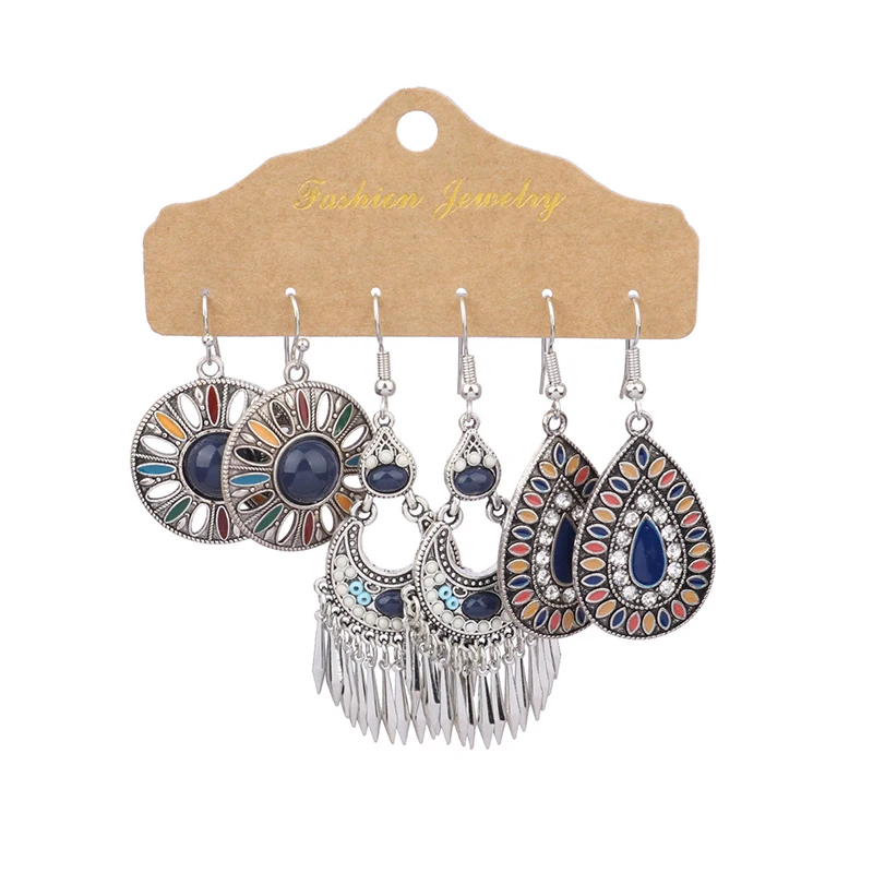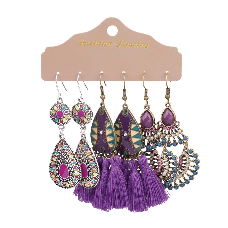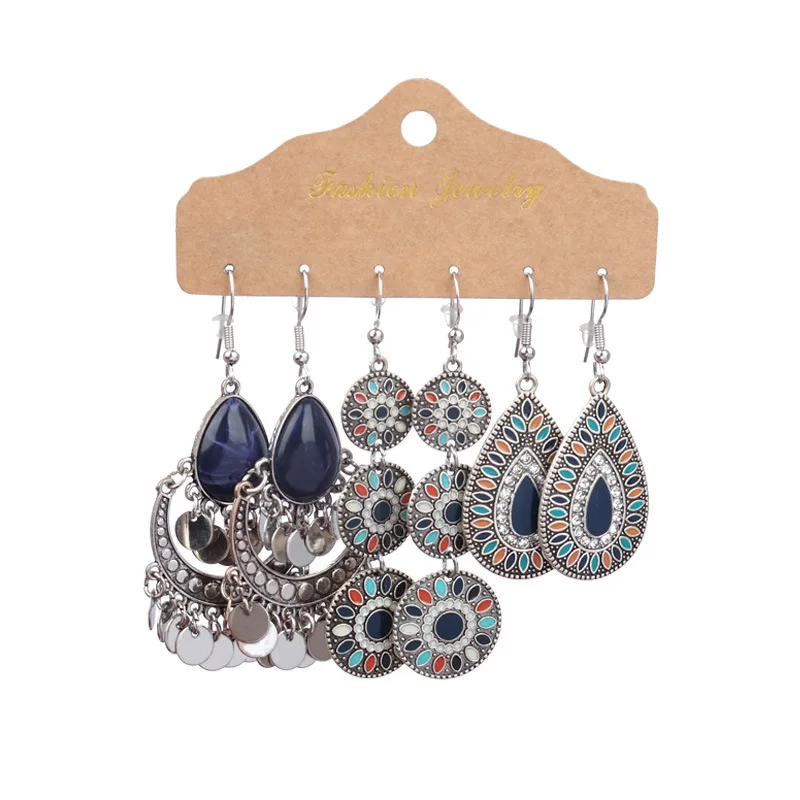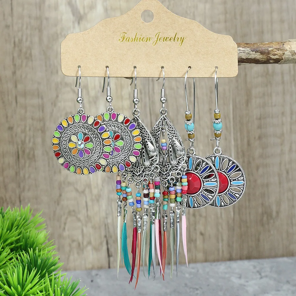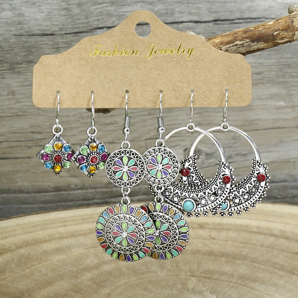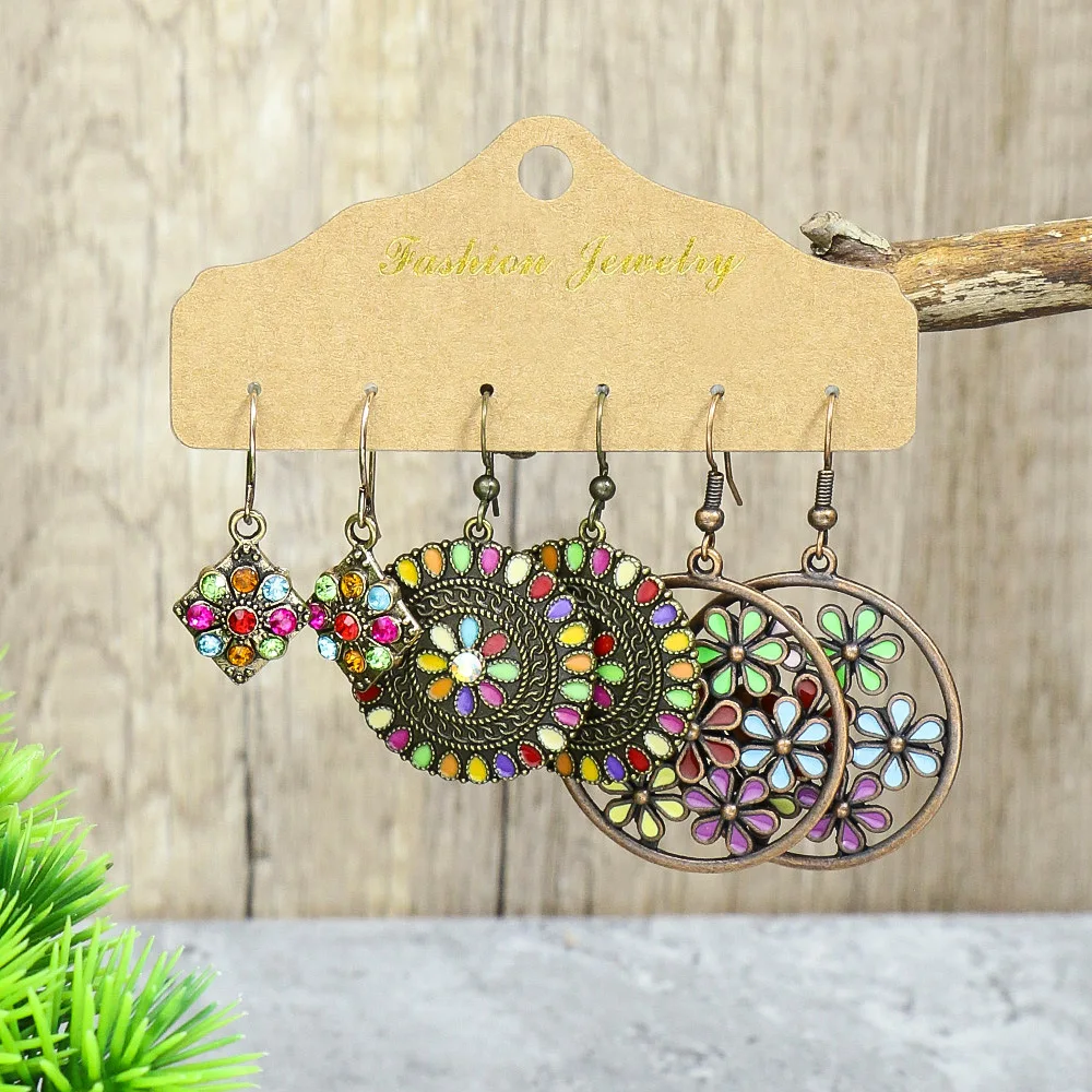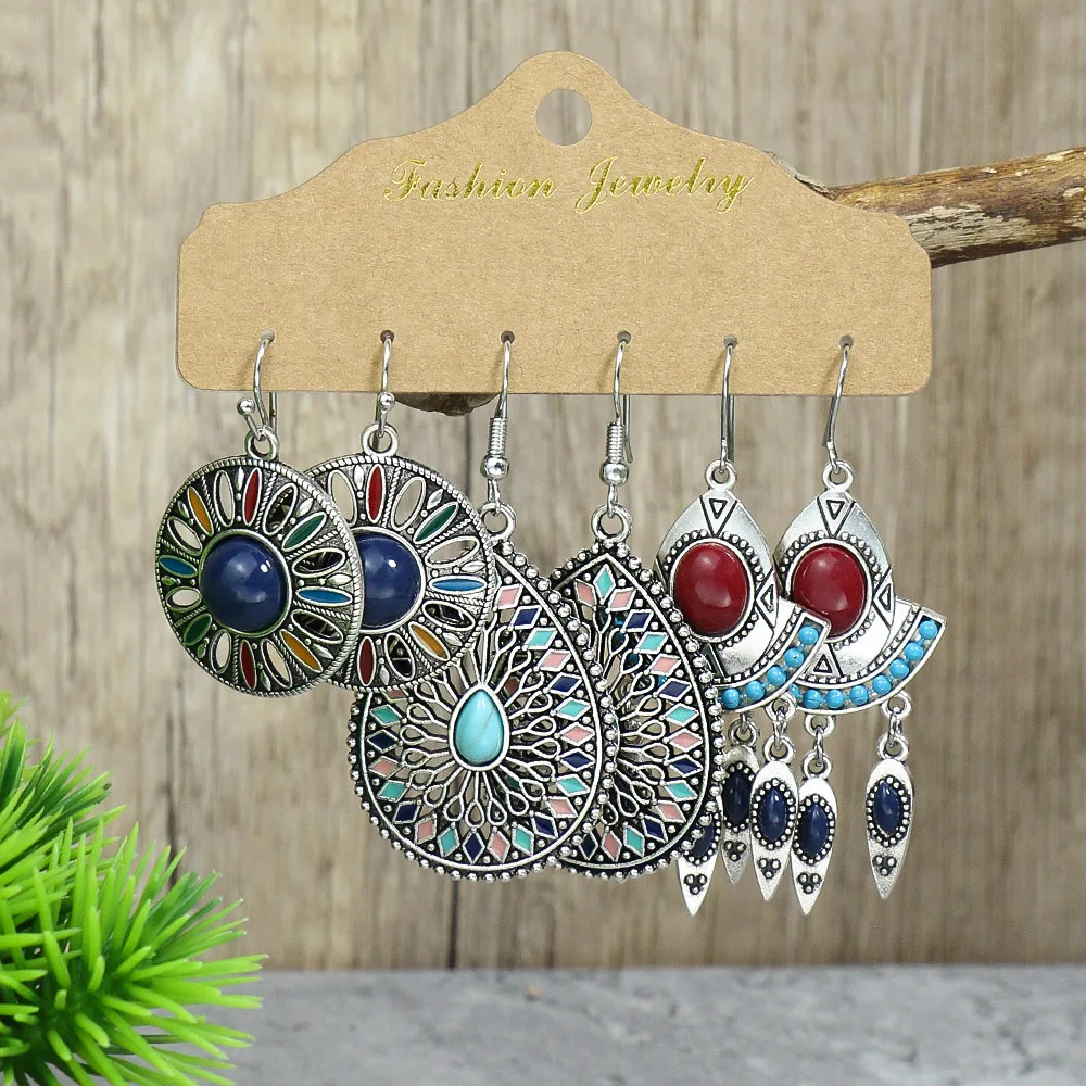Bohemian Ethnic Style Earrings Set for Women Creative Retro Drop Oil Rhinestoen Water Drop Tassel Earring Female Jewelry