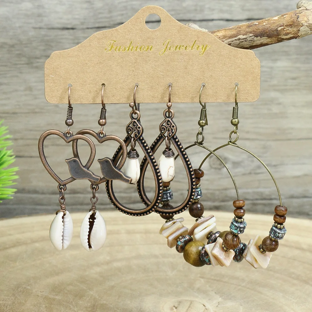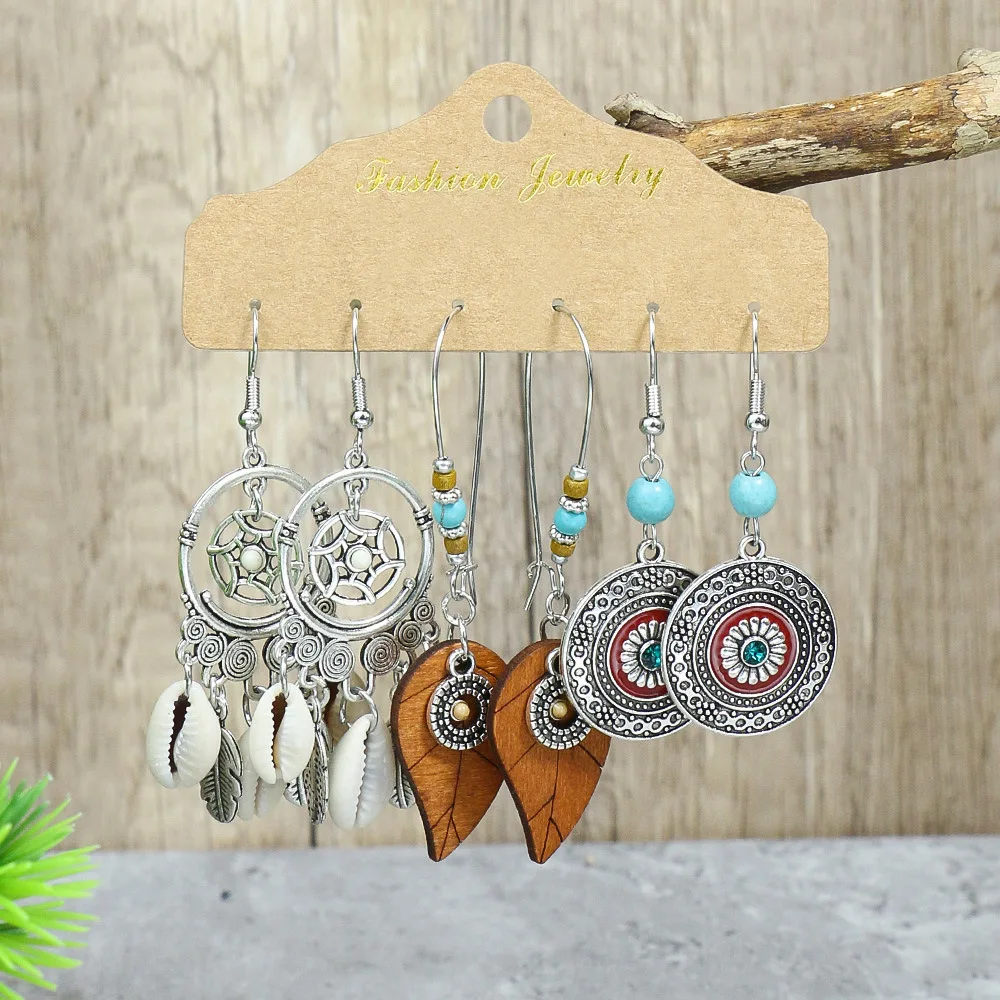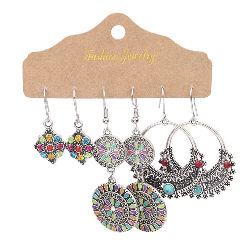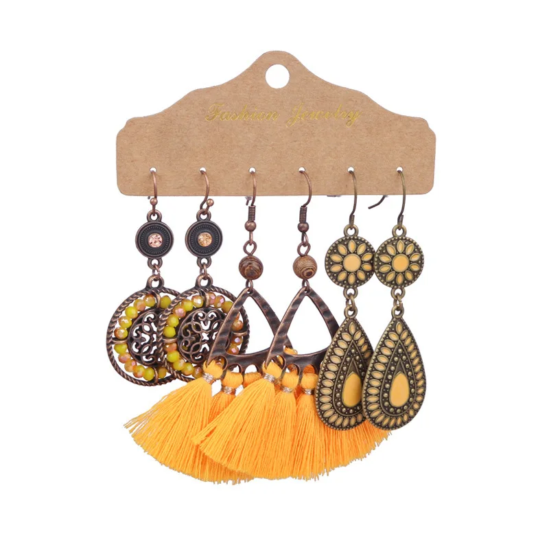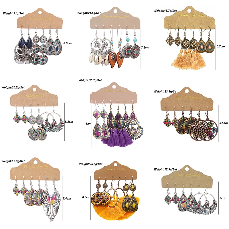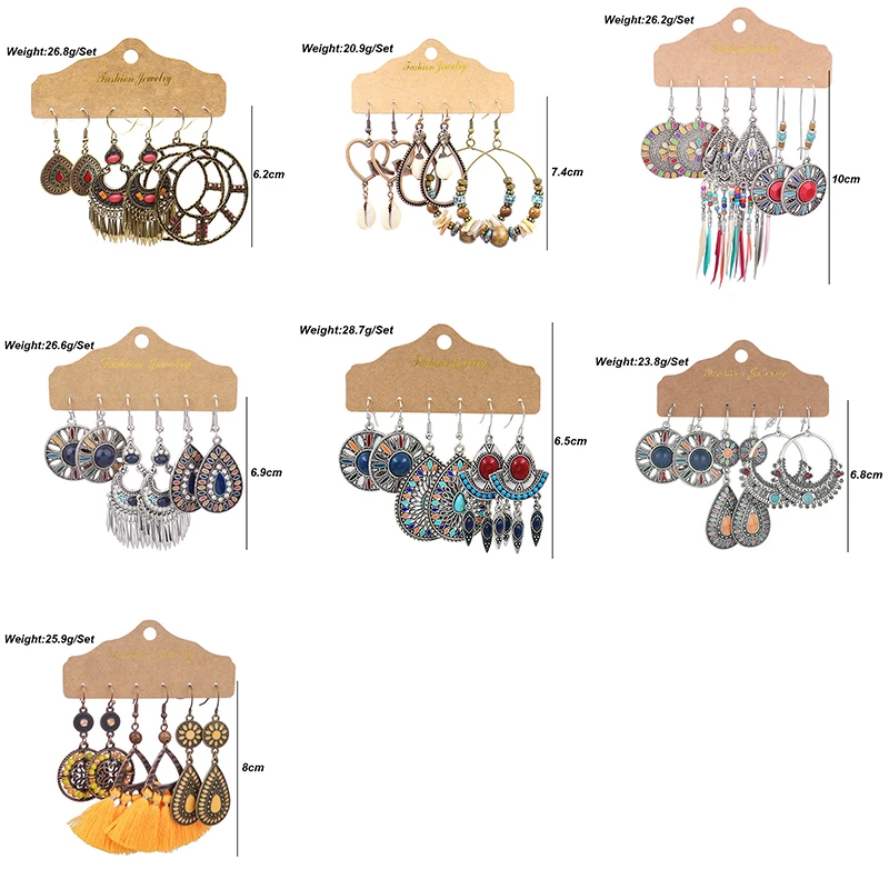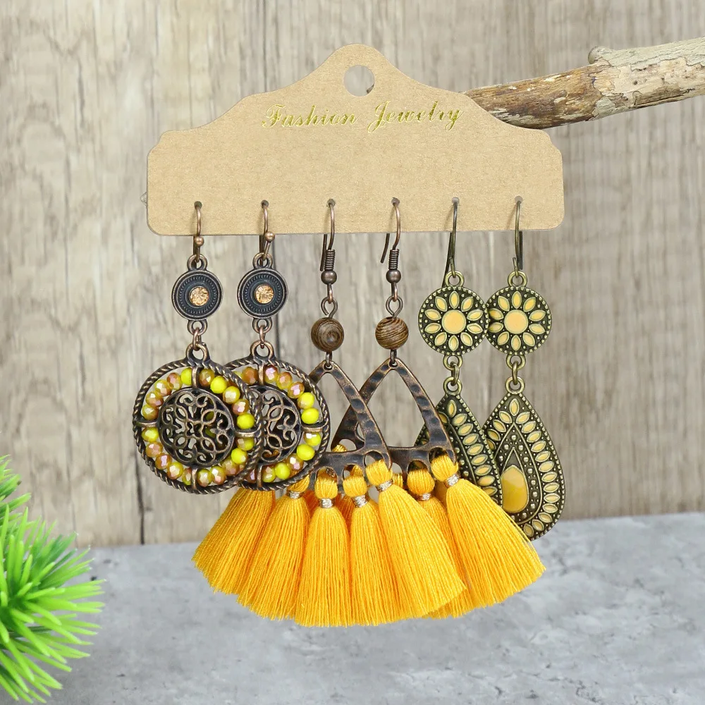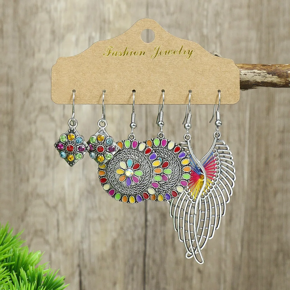Bohemian Ethnic Style Earrings Set for Women Creative Retro Drop Oil Rhinestoen Water Drop Tassel Earring Female Jewelry