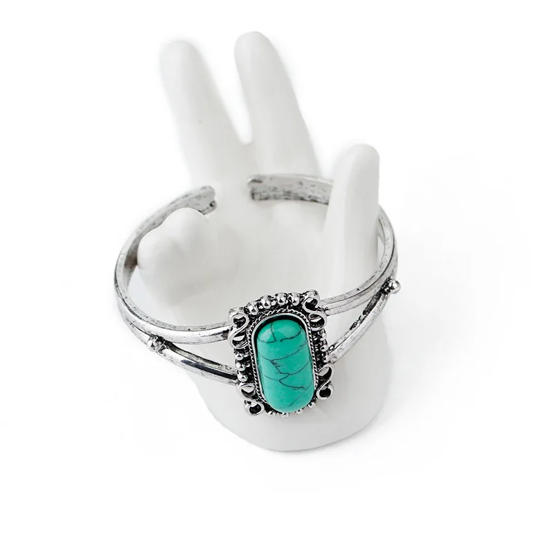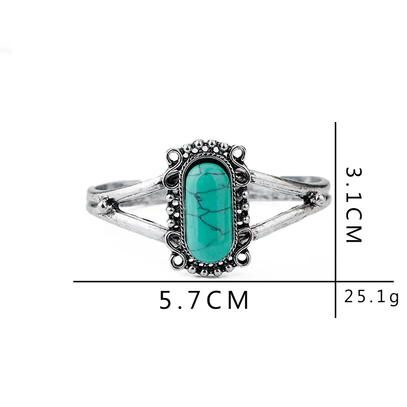 Bohemian Ethnic Style Floral Green Color Stone Opening Adjustable Bracelet Women's Retro Trend Holiday Jewelry Accessories