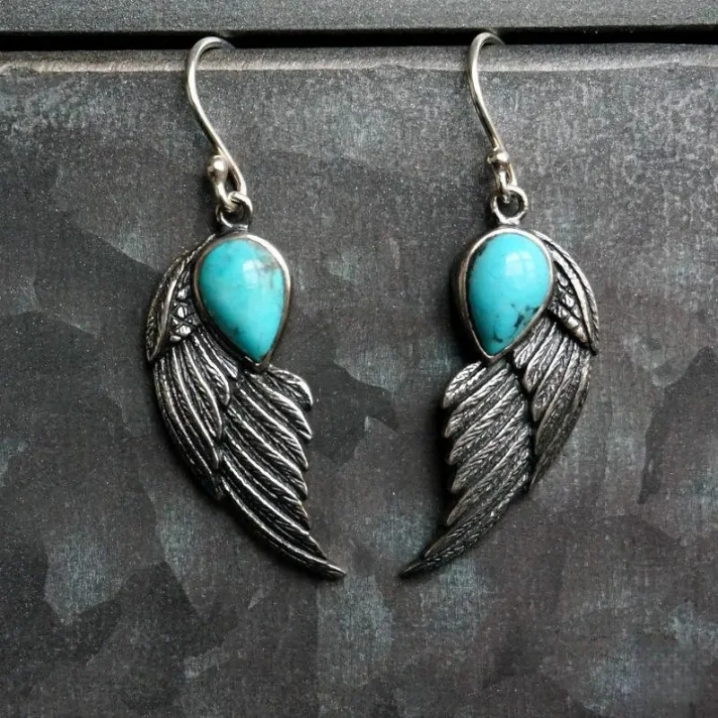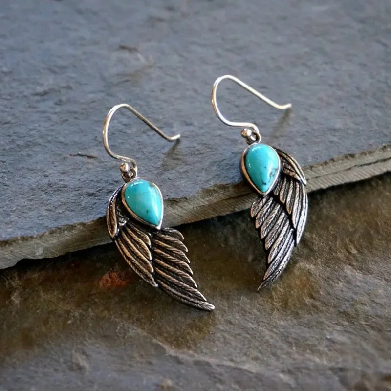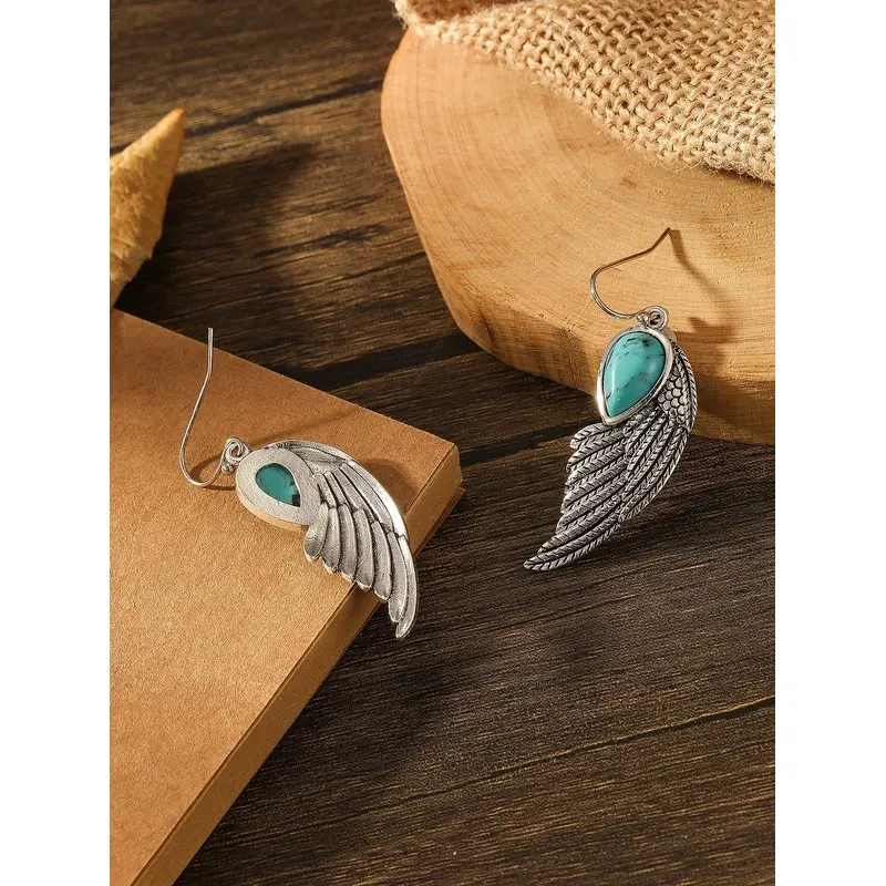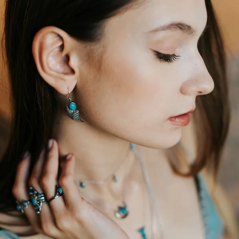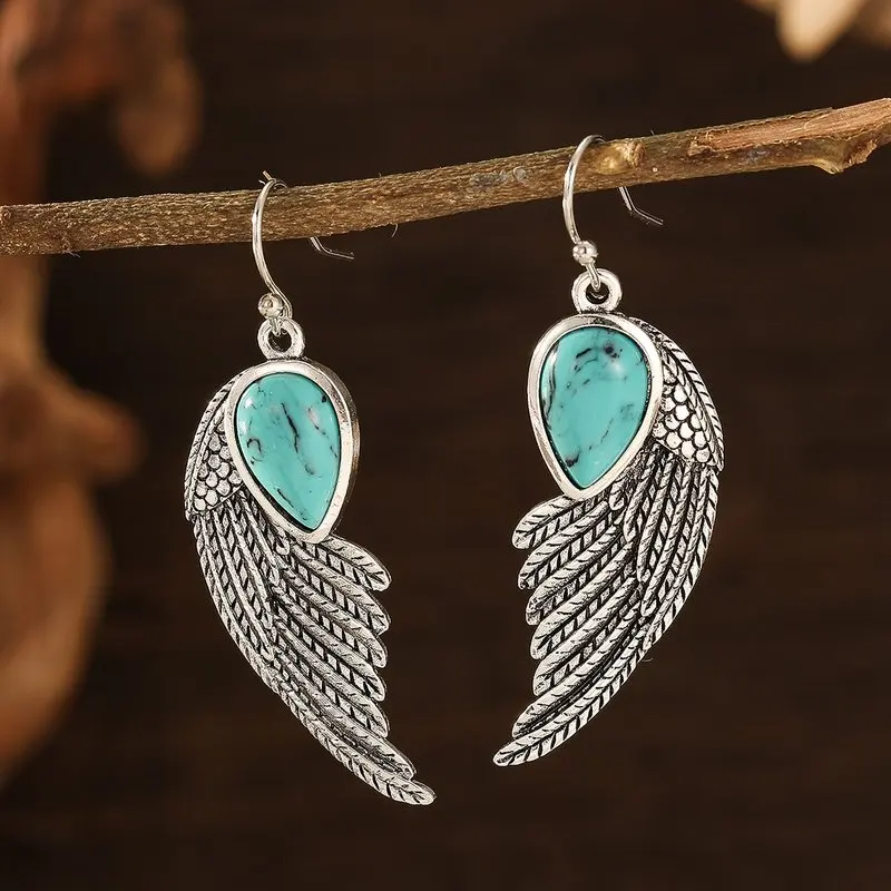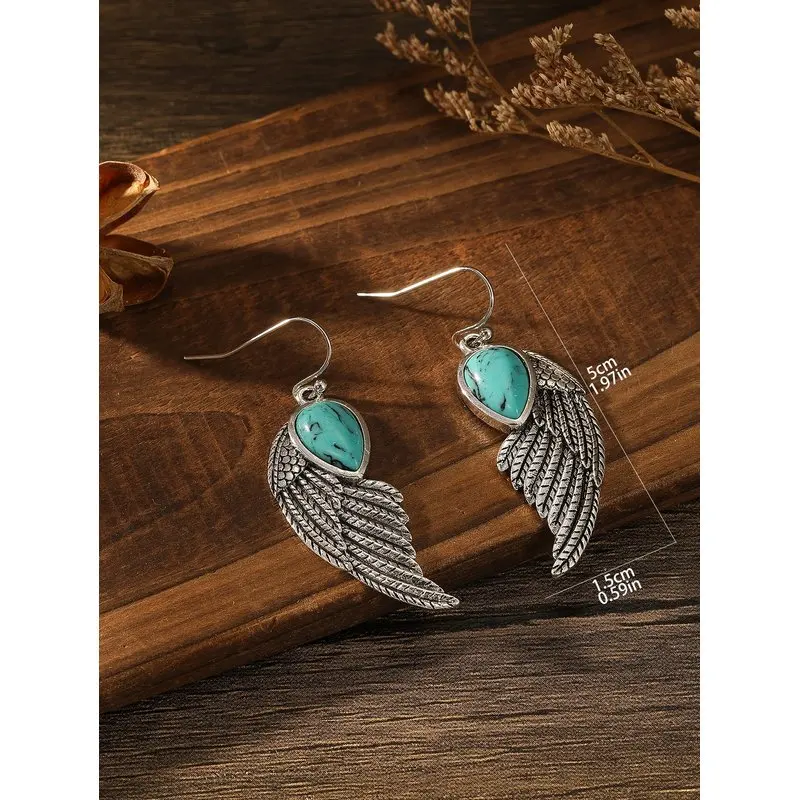 Bohemian Retro Geometric Earrings women's Ethnic Turquoise Inlaid Pendant Jewelry