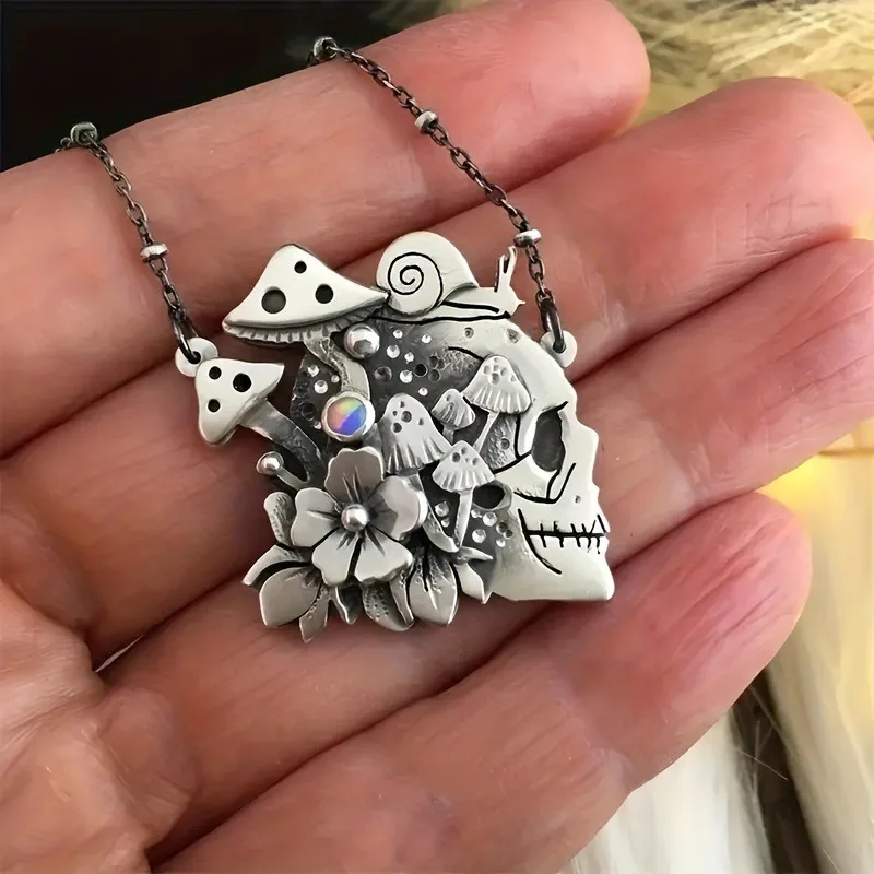 Creative Skeleton Mushroom Flower Necklace Gothic Style Skull Snail Pendant Vintage Jewelry Accessories Gifts for Women and Man