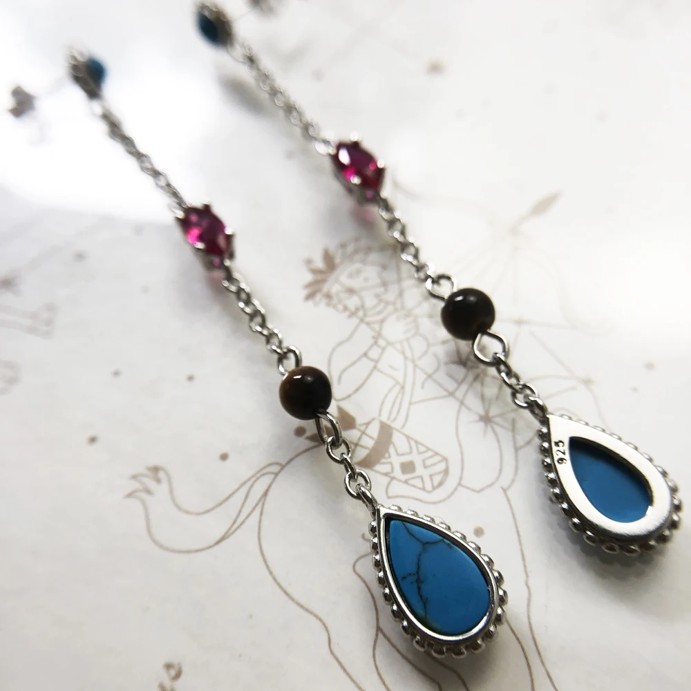 Earrings Riviera Colors Water Drop,Europe Happiness Fine Jewelry For Women Autumn Brand New Turquoise Sterling Silver 925 Gift