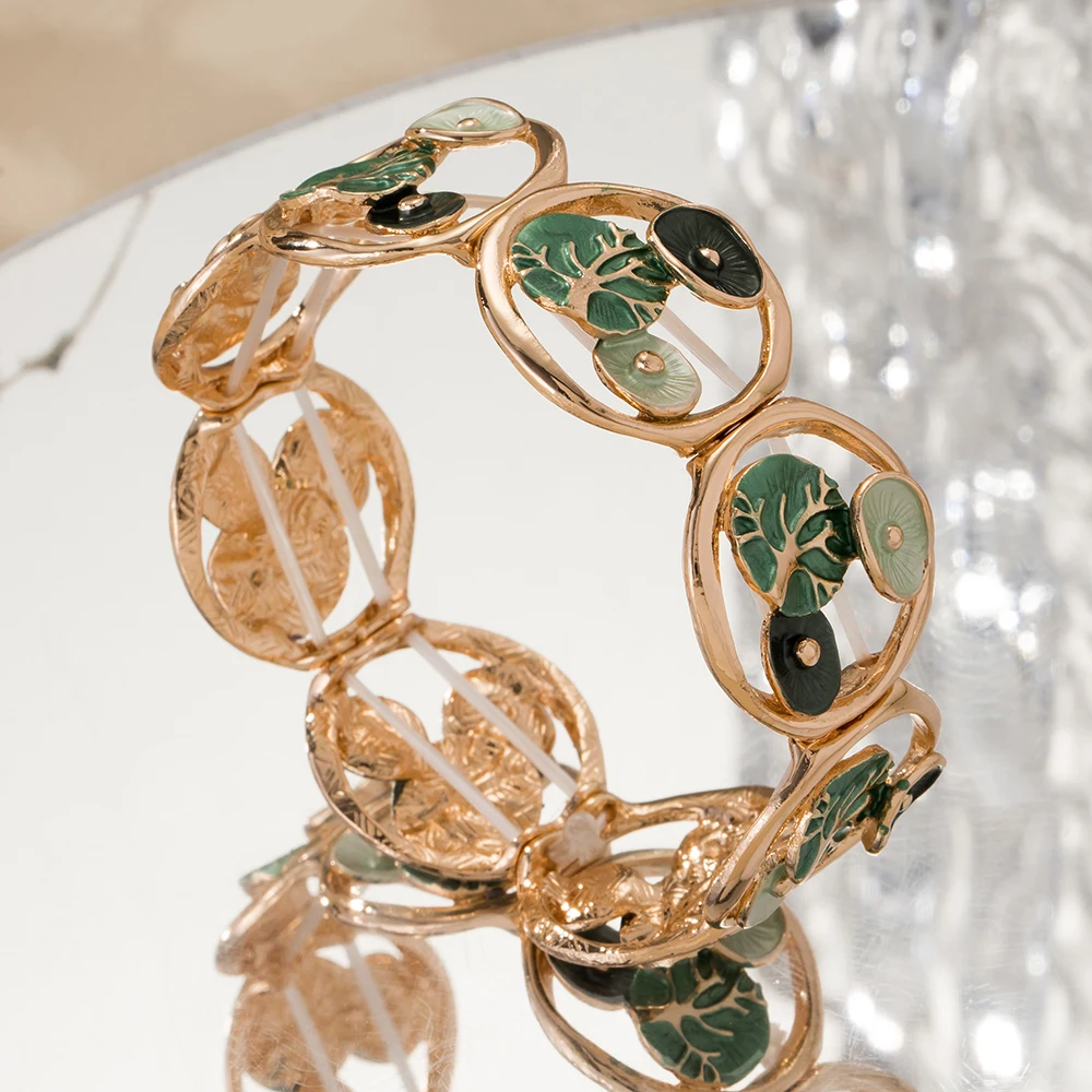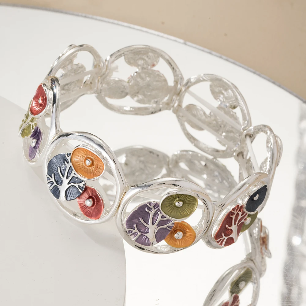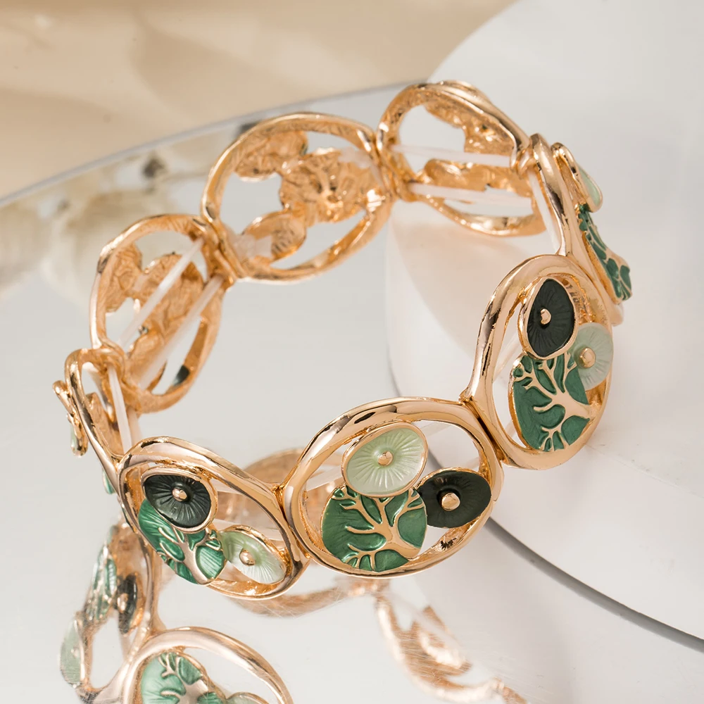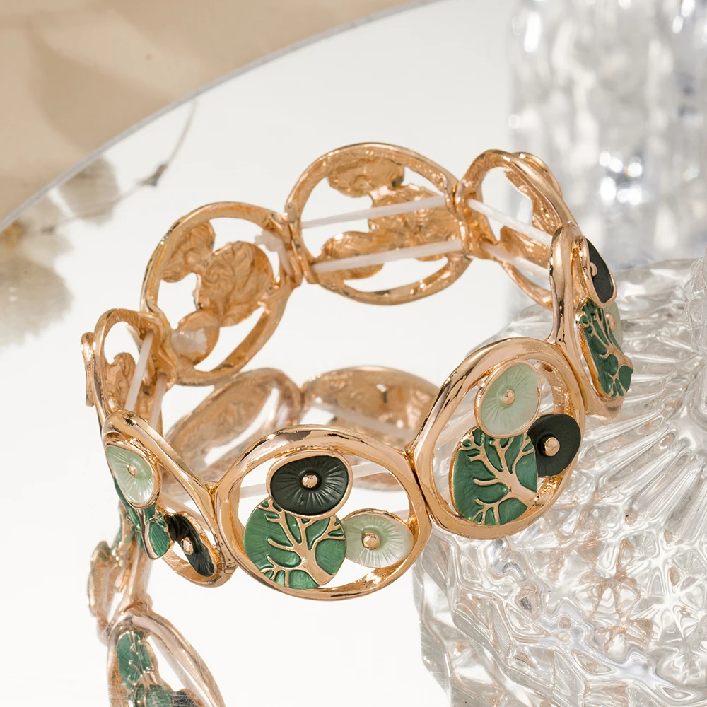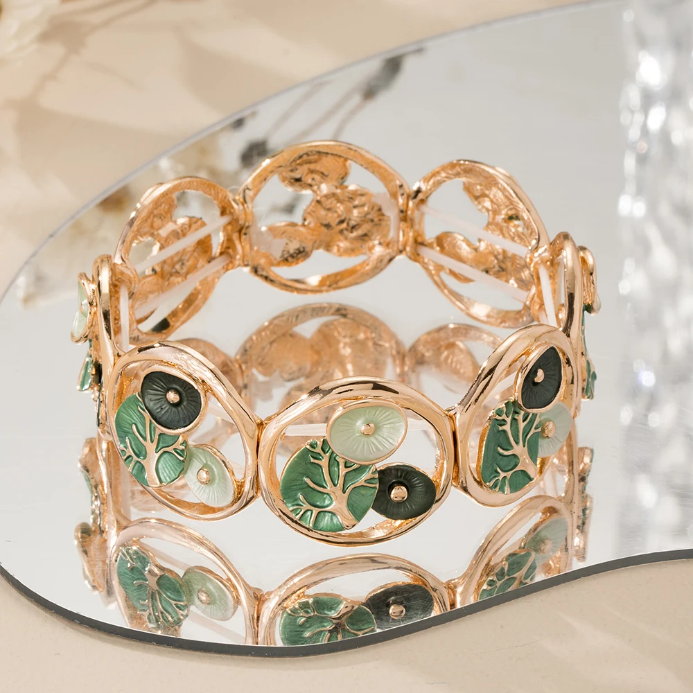 Fashion Classic Tree of Life Elastic Bracelet for Women Accessories New Trendy Gold Color Bangle Daily Party Prom Jewelry Gifts