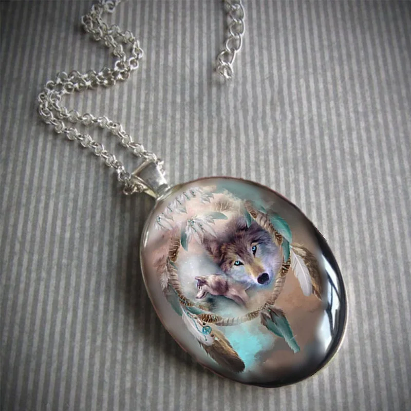 Fashion Creative Men's Pendant Necklace Personalized Hip Hop Animal Wolf Feather Oval Pendant Chain Necklace Jewelry Party Gift