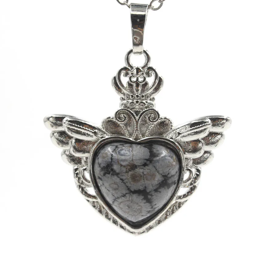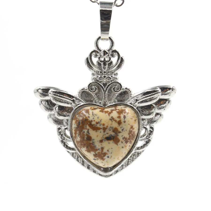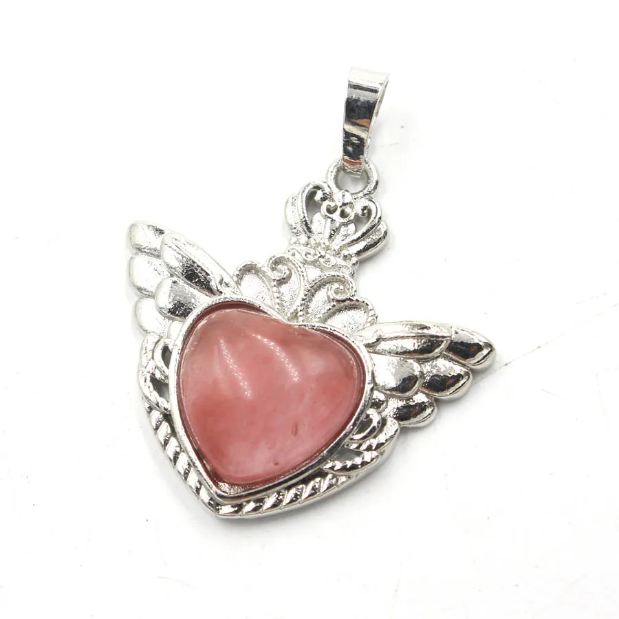 Heart Bead Wings Necklace Pendants Reiki Pendulum Silver Plated Natural Stone Charms Crystal Fashion Jewelry 1pcs