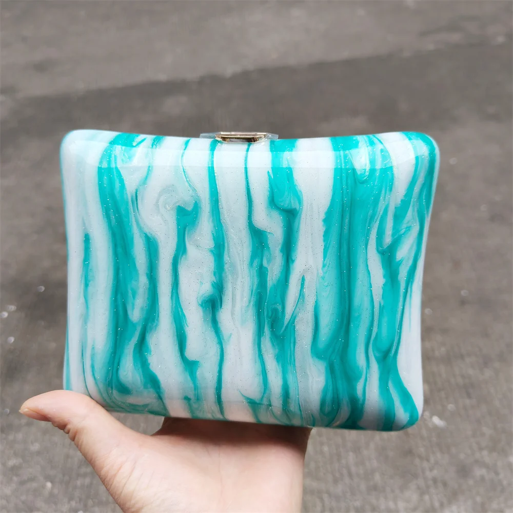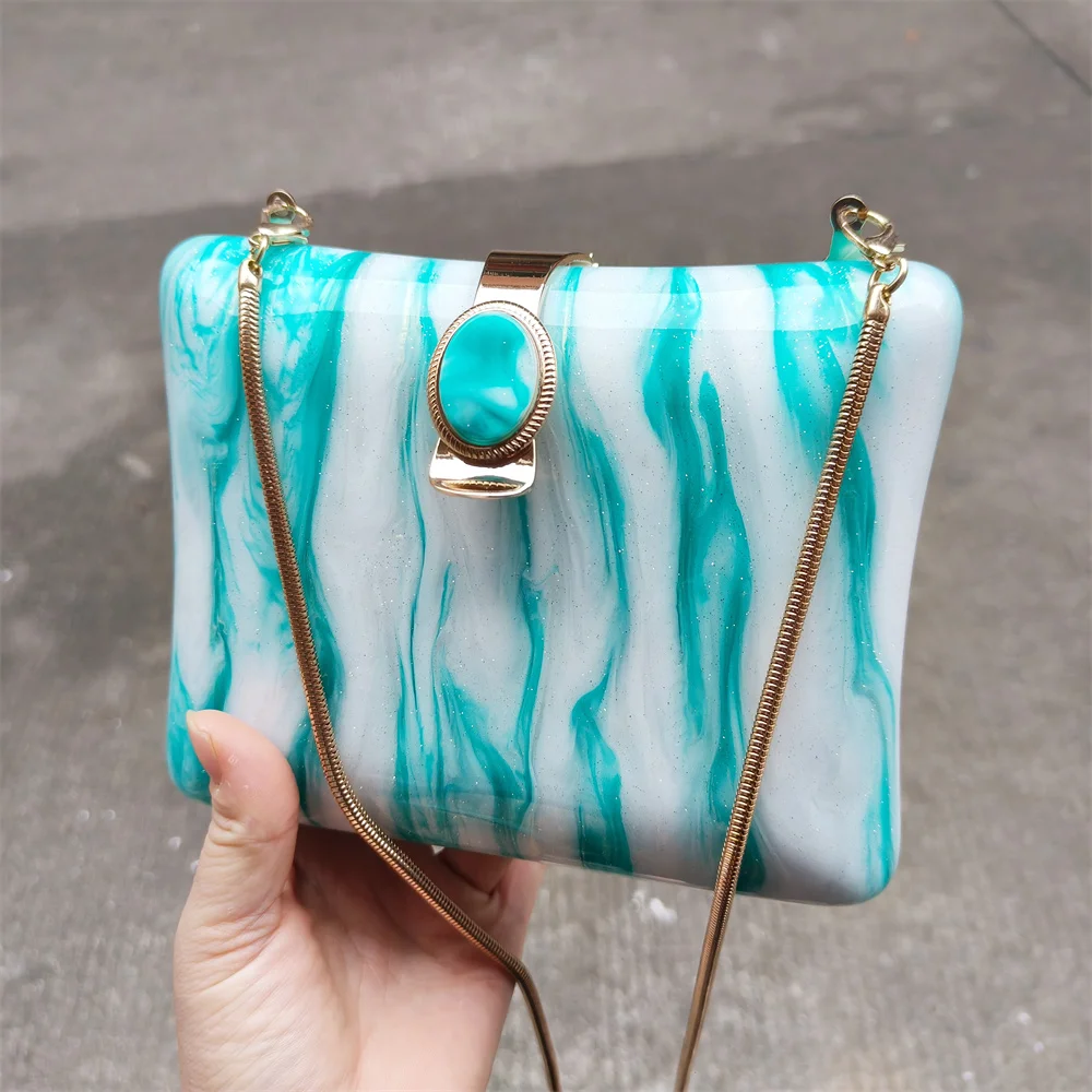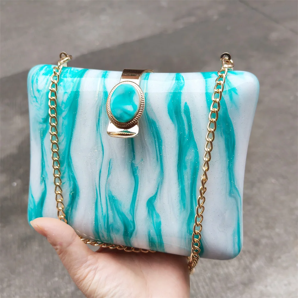 Irregular Green Glitter Handmade Women Acrylic Box Evening Clutch Bags Chic Elegant Shoulder Messenger Totes Purses And Handbag