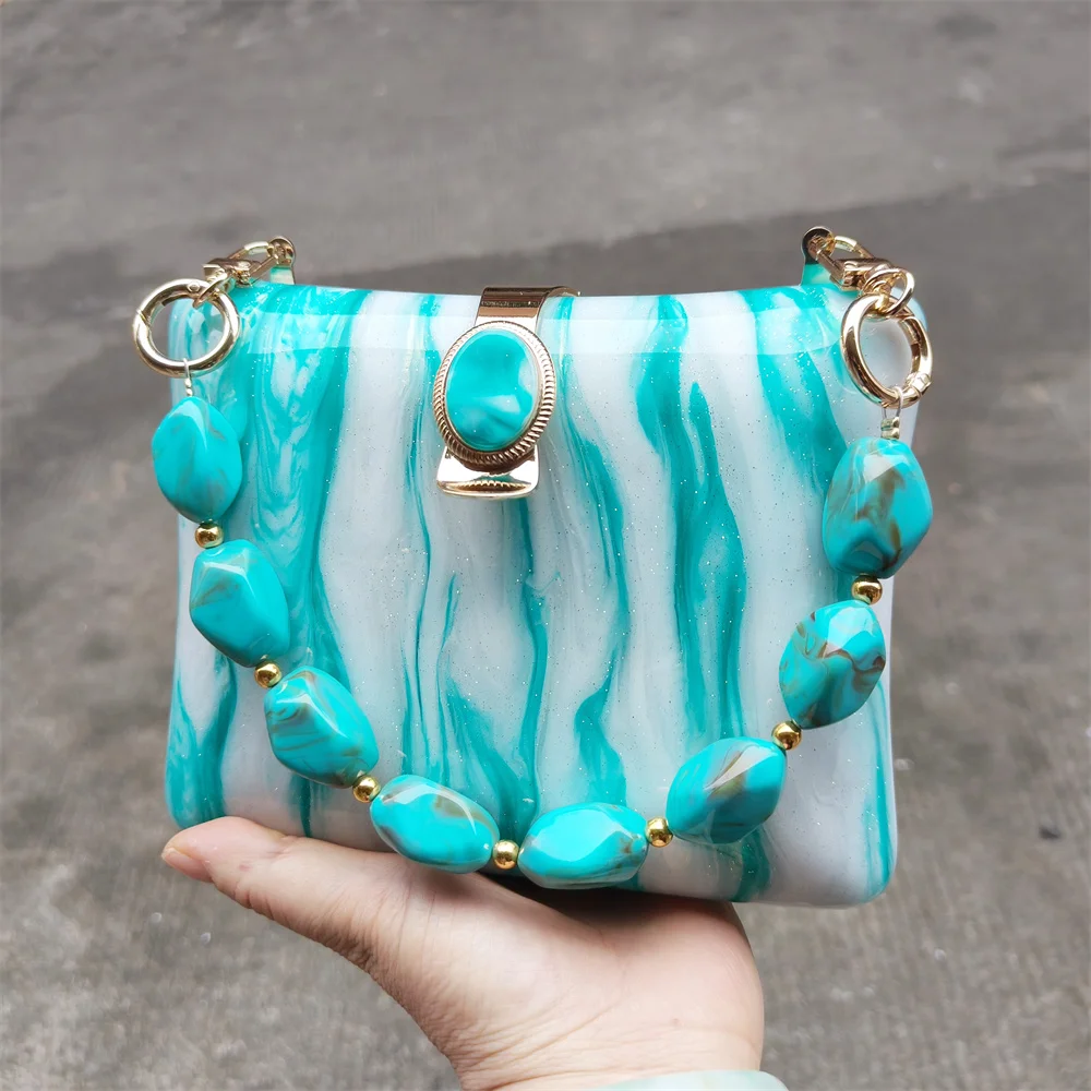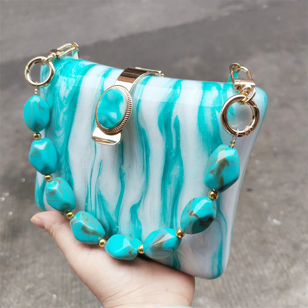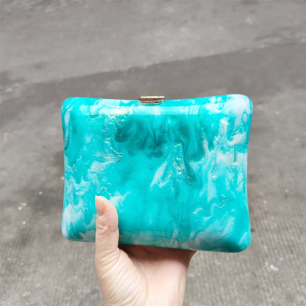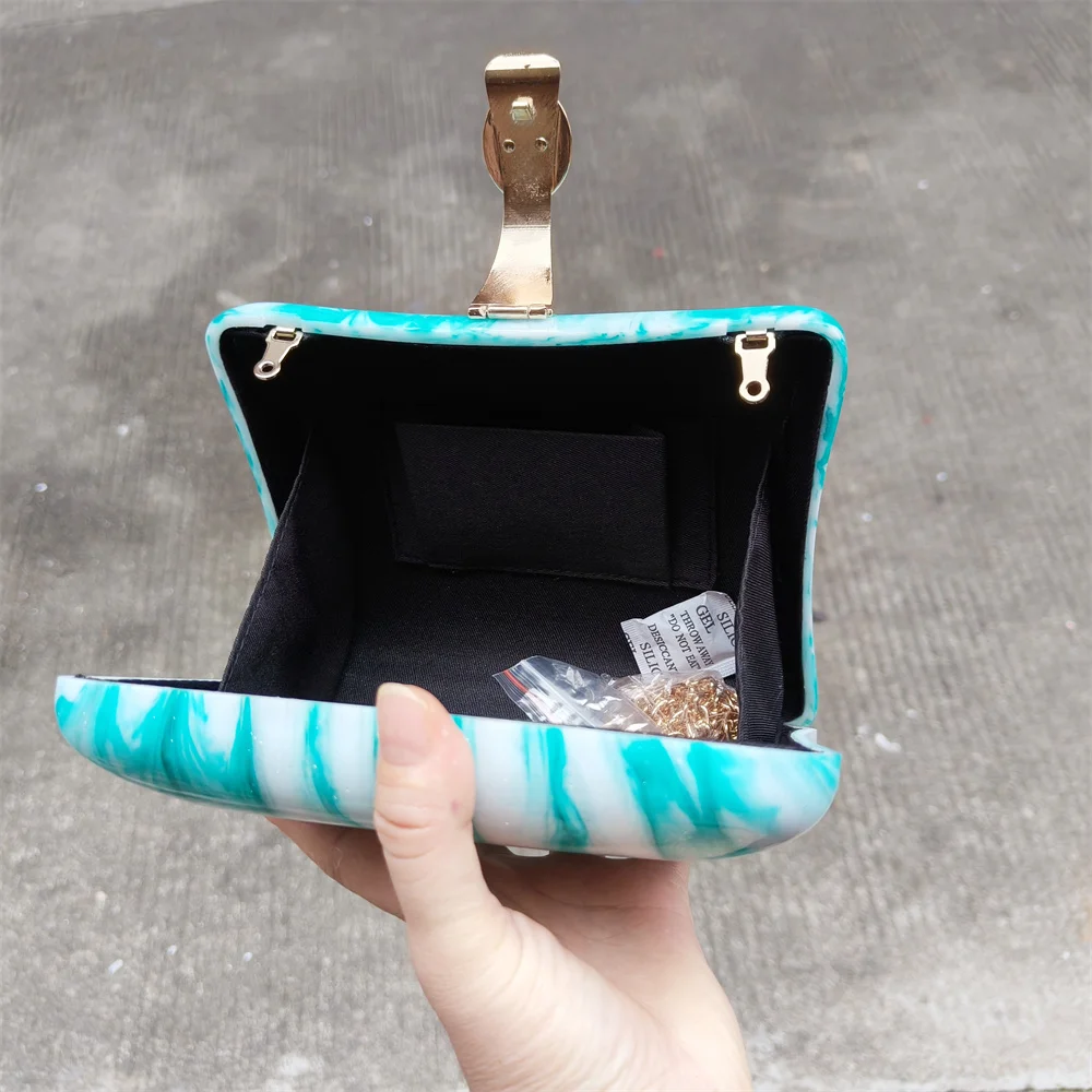 Irregular Green Glitter Handmade Women Acrylic Box Evening Clutch Bags Chic Elegant Shoulder Messenger Totes Purses And Handbag