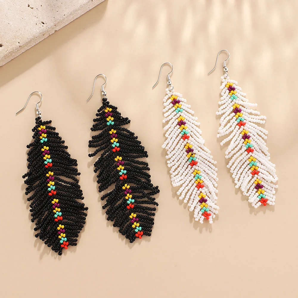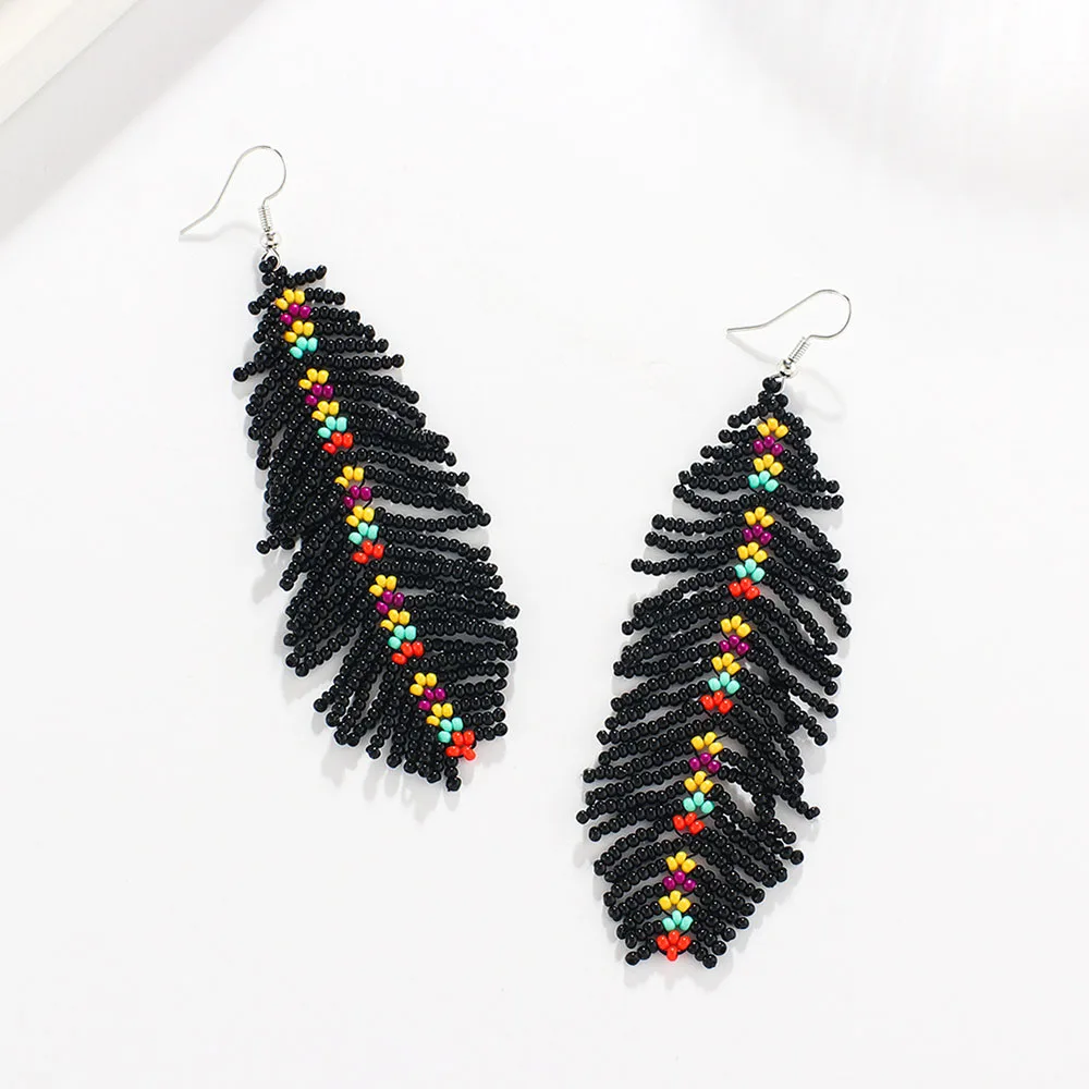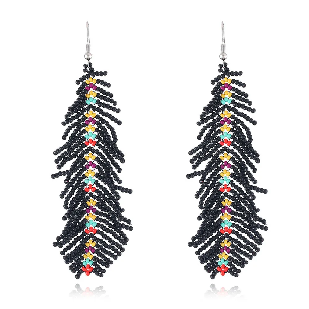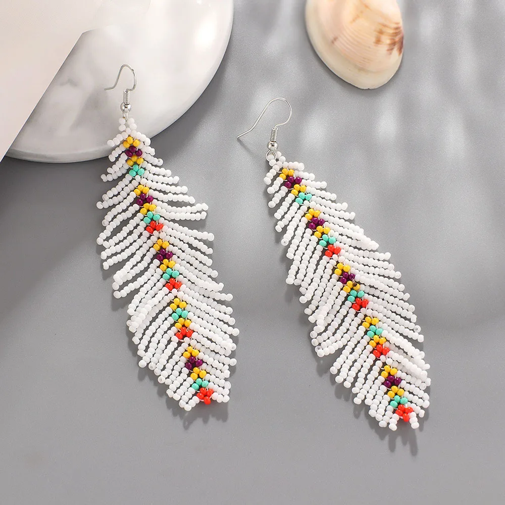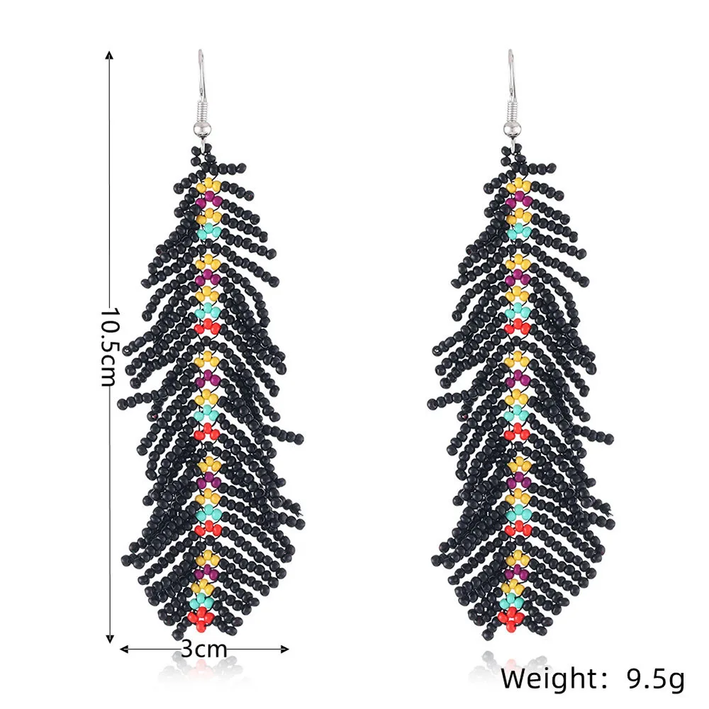 Most Popular Vintage Jewelry Accessories Bohemia Handmade Rice Beads Leaf Shape Boho Beaded Long Hanging Earrings for Women New