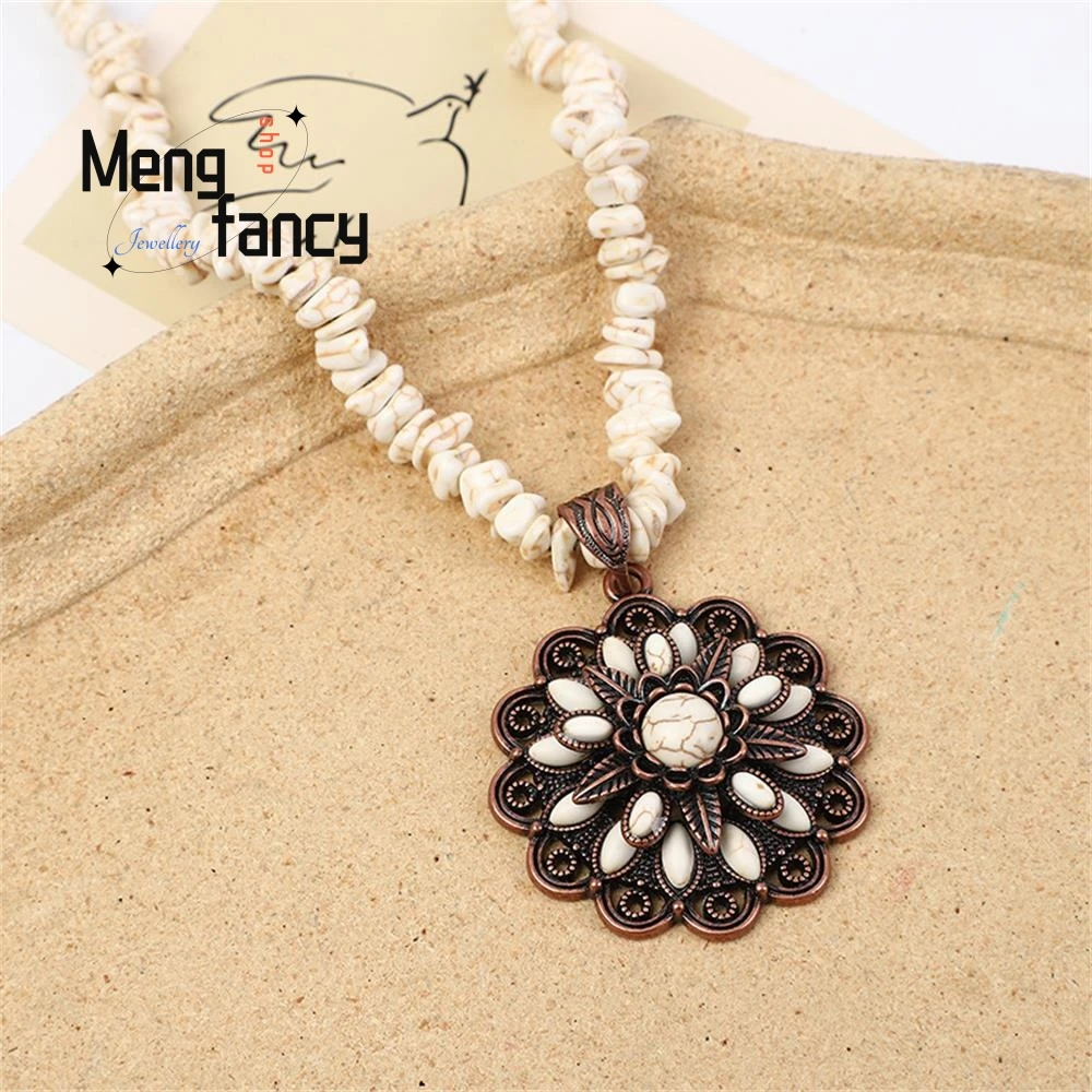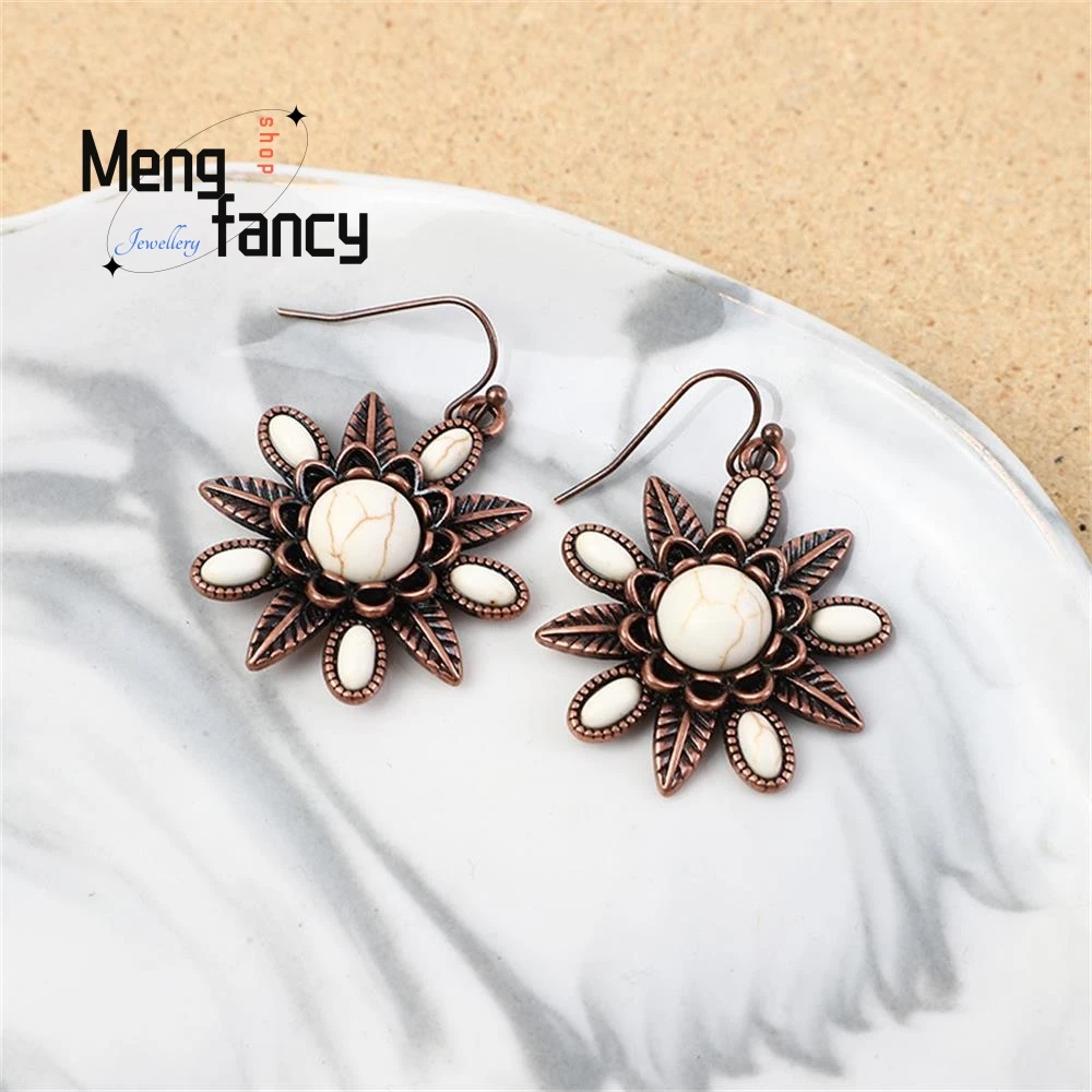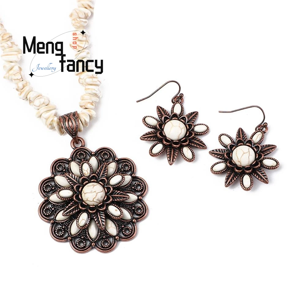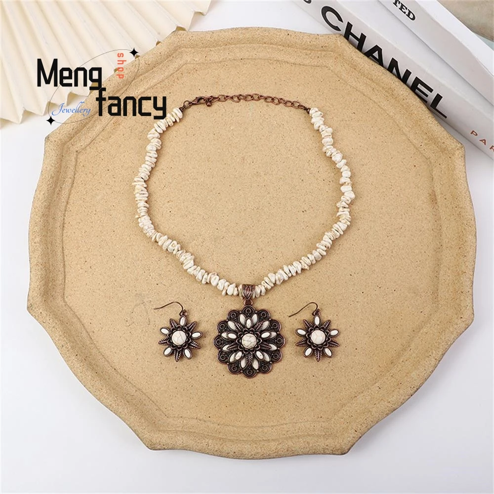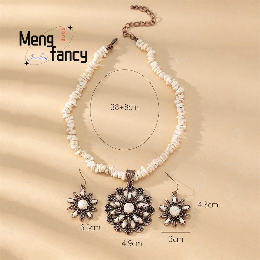 Natural Thai Silver Turquoise Earrings Necklace Antique Gold Ivory Turquoise Exaggerated Best Selling Exquisite Fashion Jewelry
