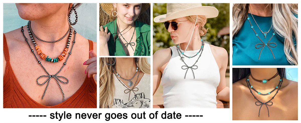 Western Accessories For Women: The western stuff comes with different styles. You can wear it alone as a bow necklace, or pair it with our turquoise necklace as a layered western necklace.