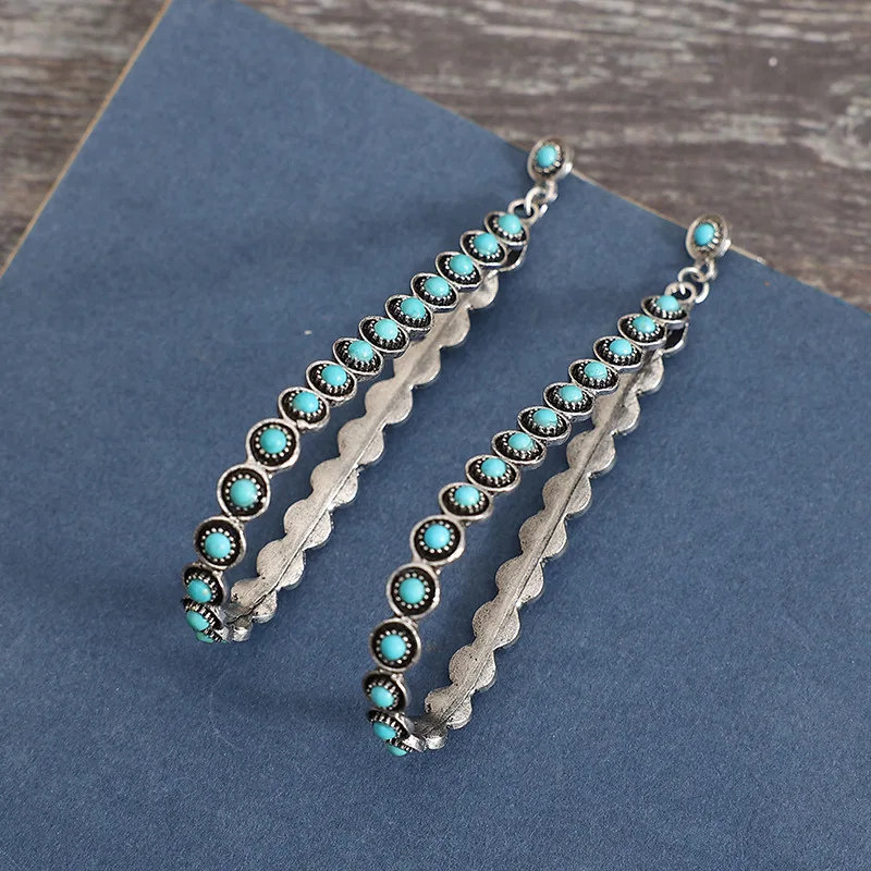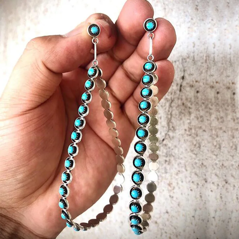 Navajo Style Aretes Punchy Blue Kingman Turquoise Teardrop Hoop Earrings for Women Western Style Turquoise Loop Earrings
