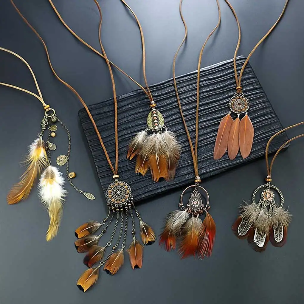Necklace Alloy Feather Art Sweater Chain Casual Party Travel Neck Pendant Jewelry Dressing Clothing Decoration