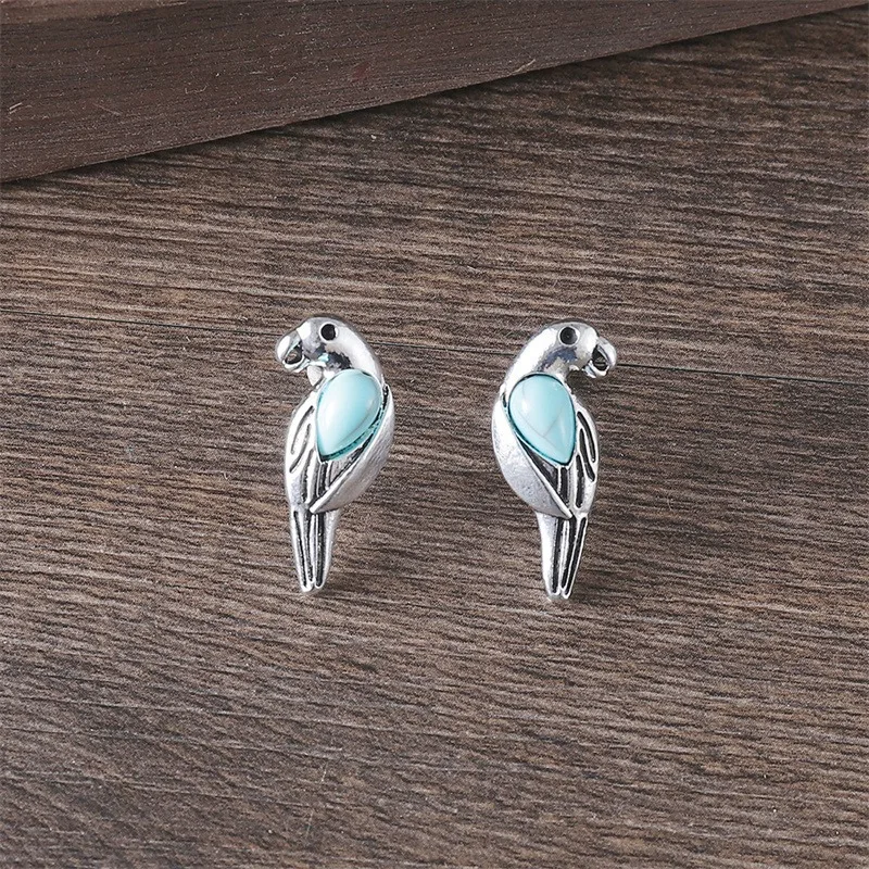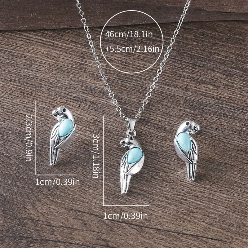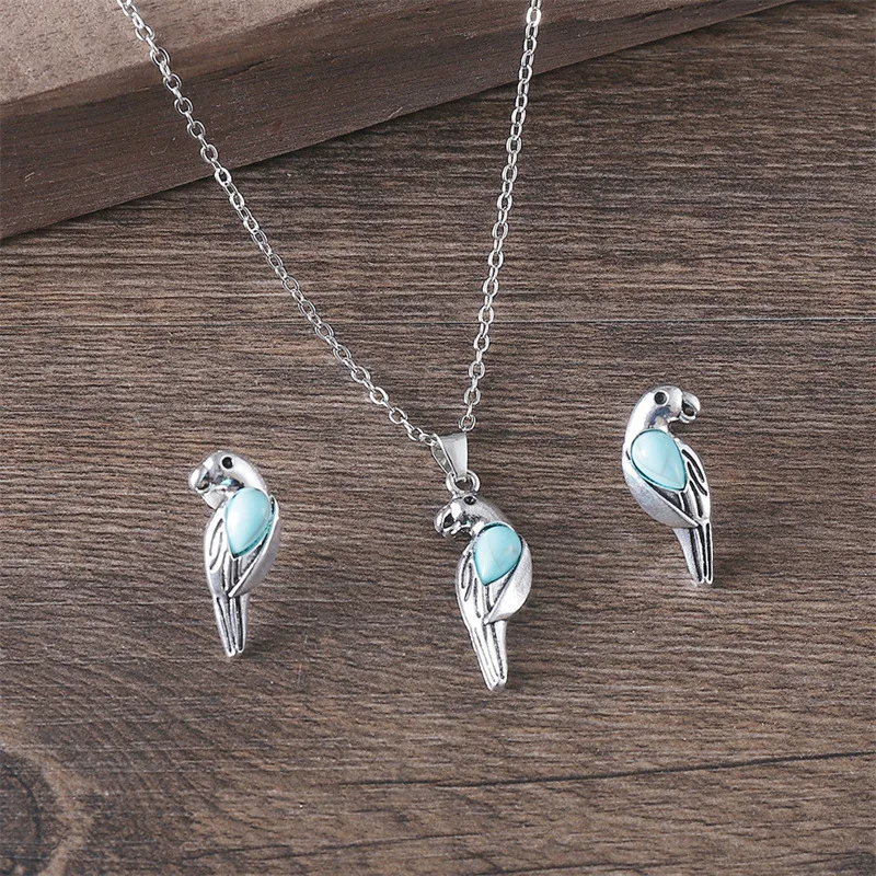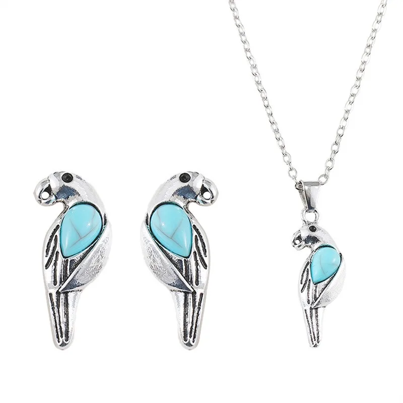 New Retro Inlaid Turquoise Bird Earrings and Necklace Set for Women Fashionable Simple Versatile and High-end Jewelry