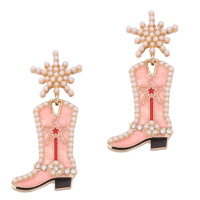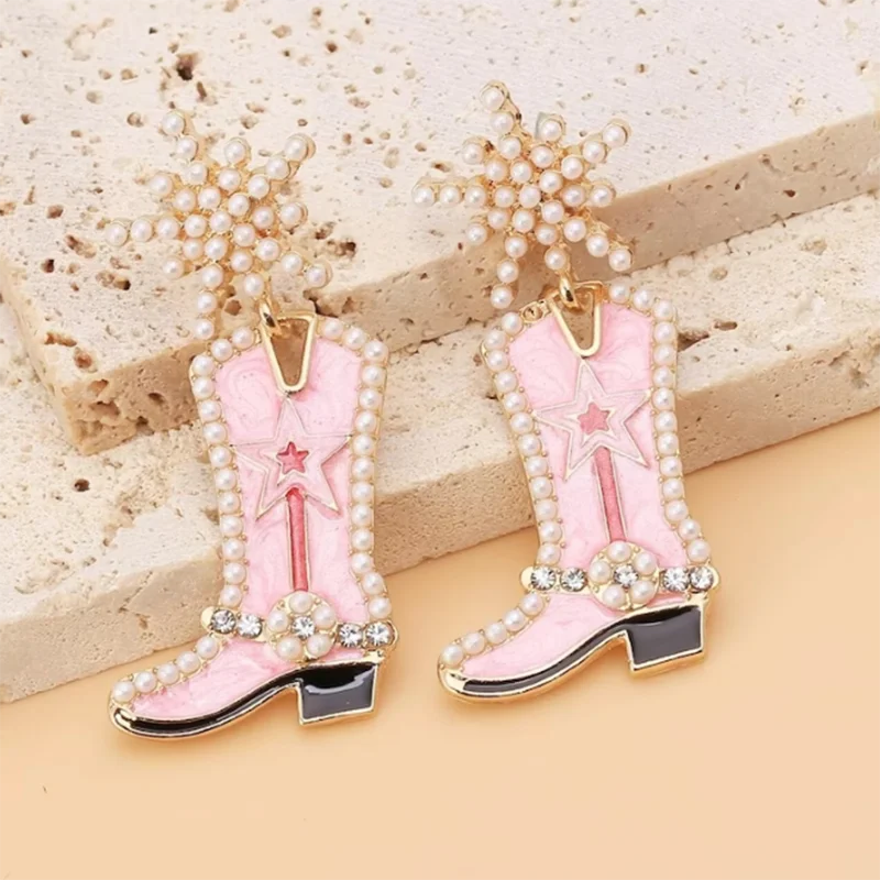 Pink Cowgirl Boot Drop Earrings