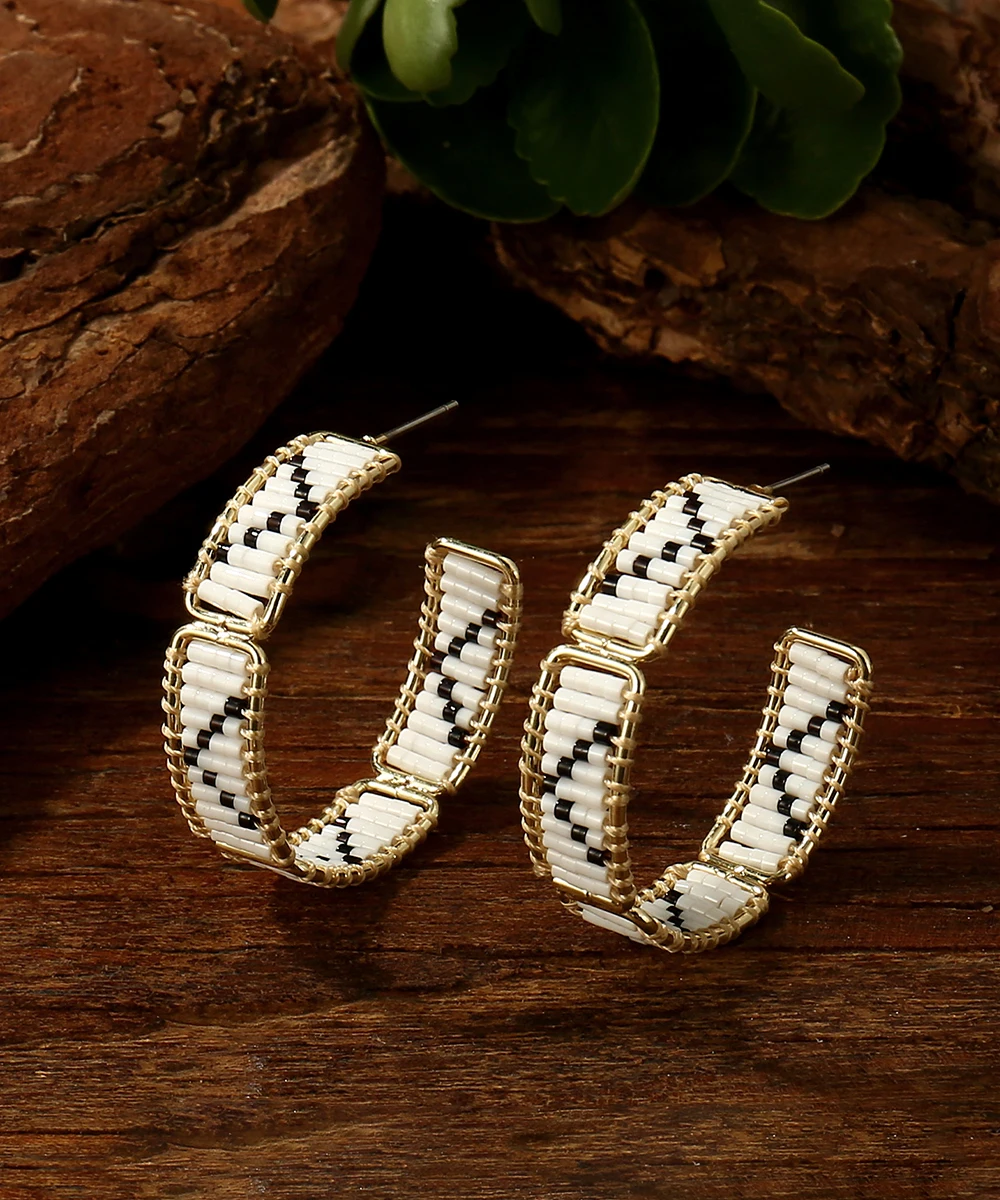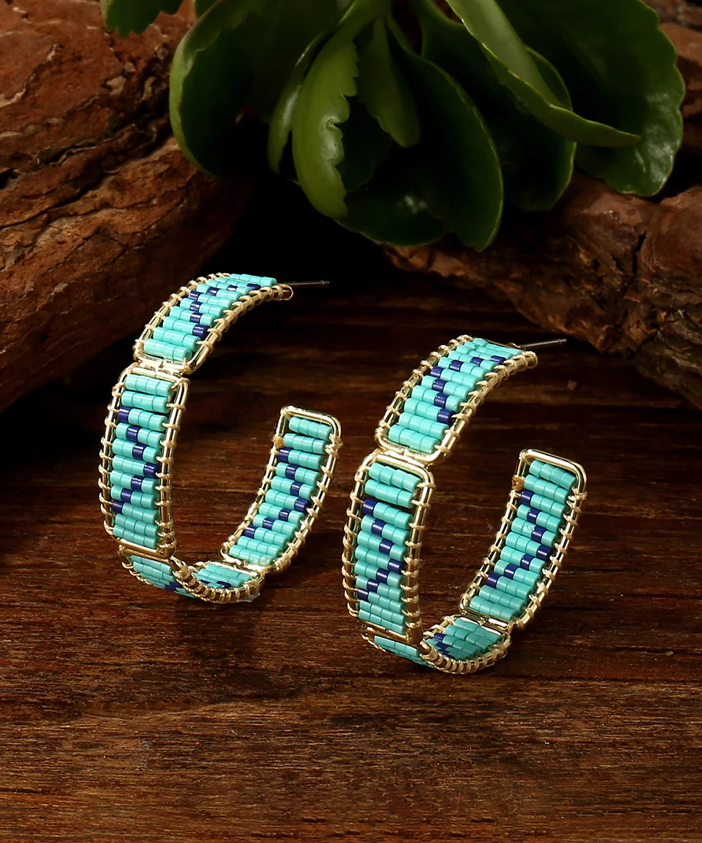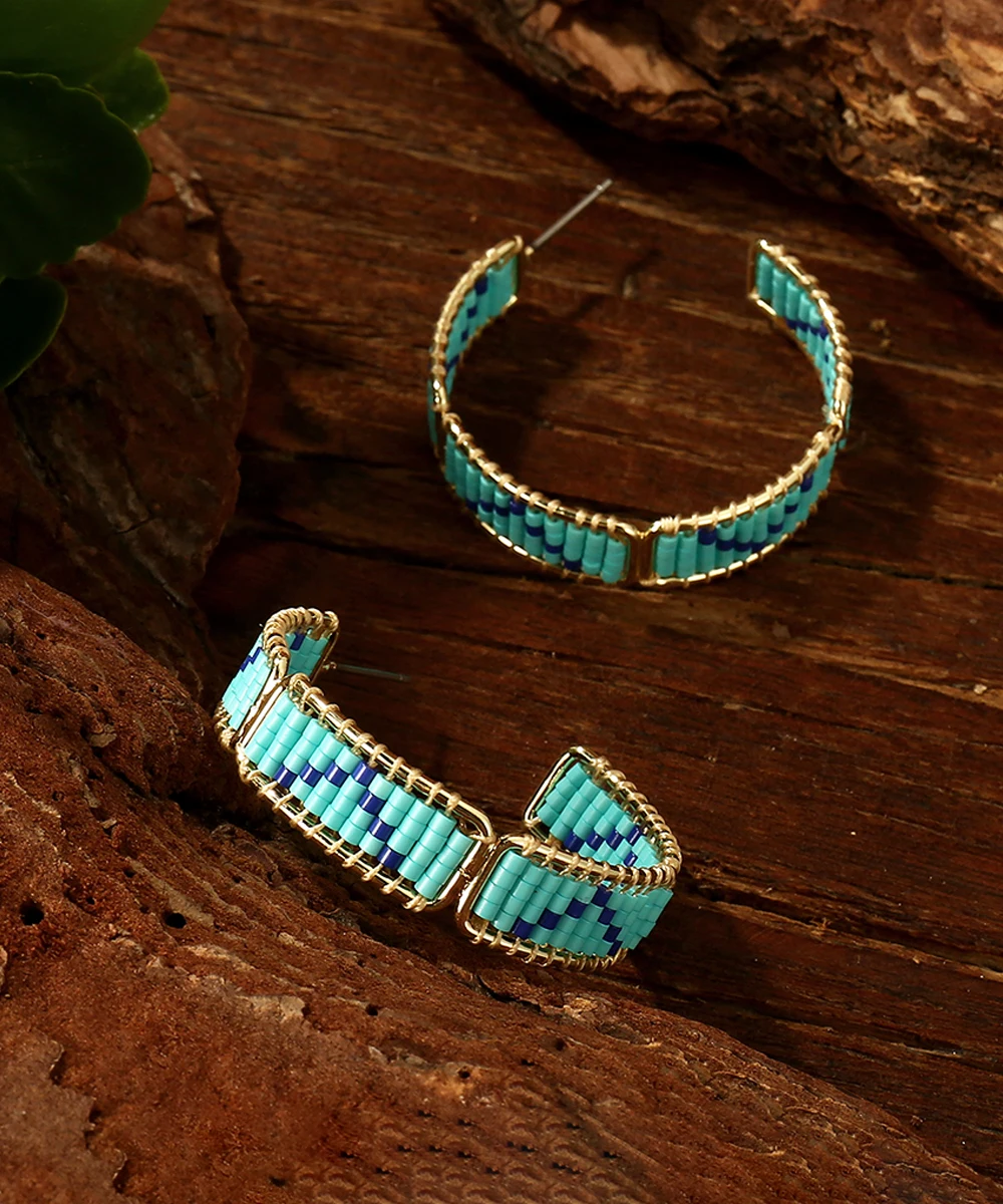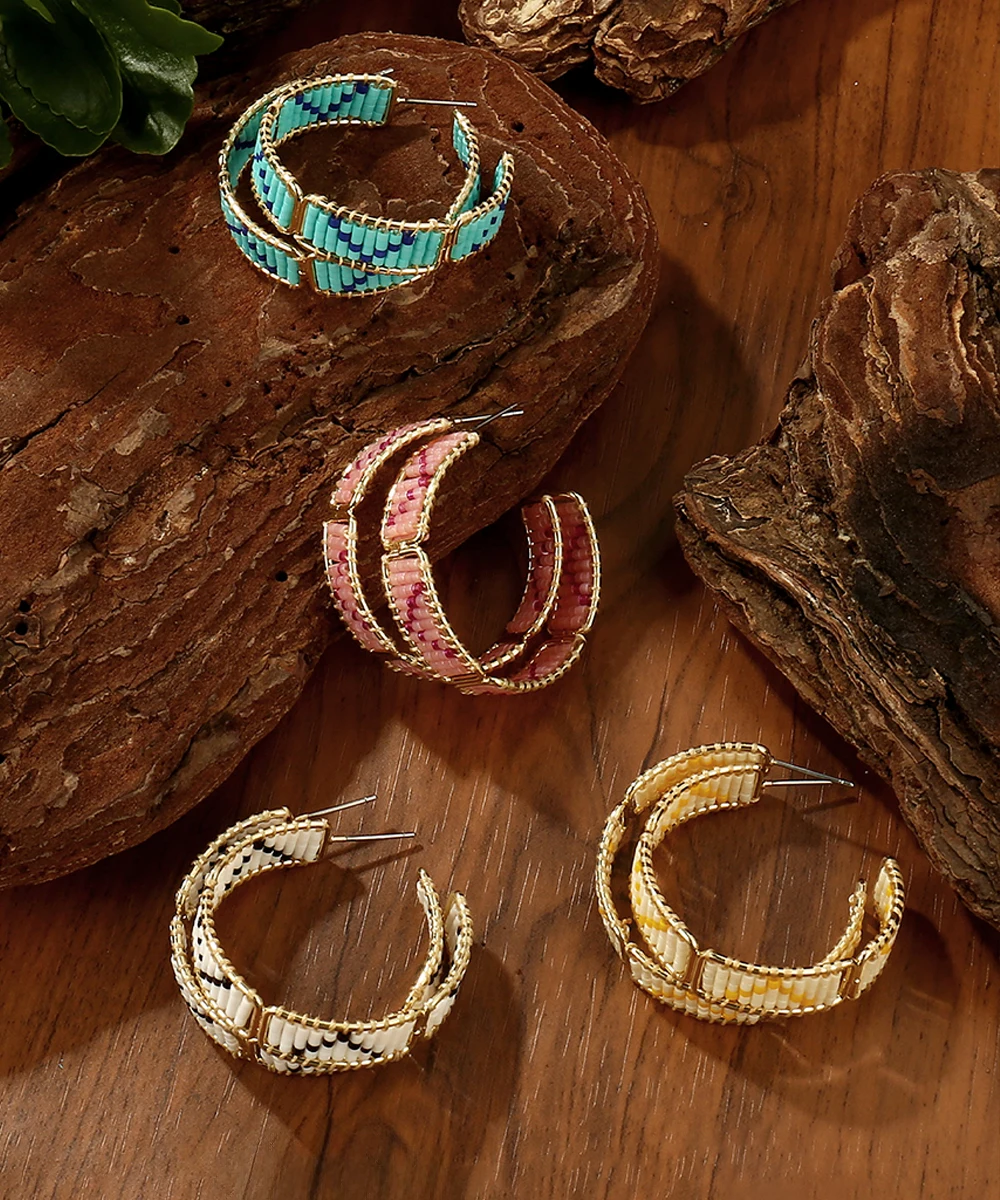 Retro Bohemia Chic Pattern Beaded Hoop Earrings for Women High Quality Miyuki Beads Earrings Jewelry