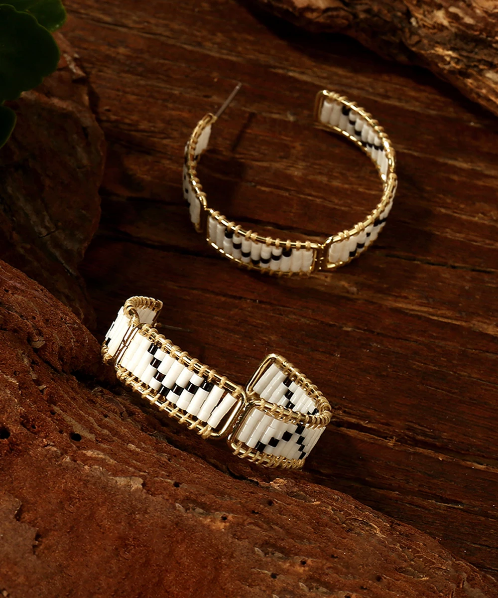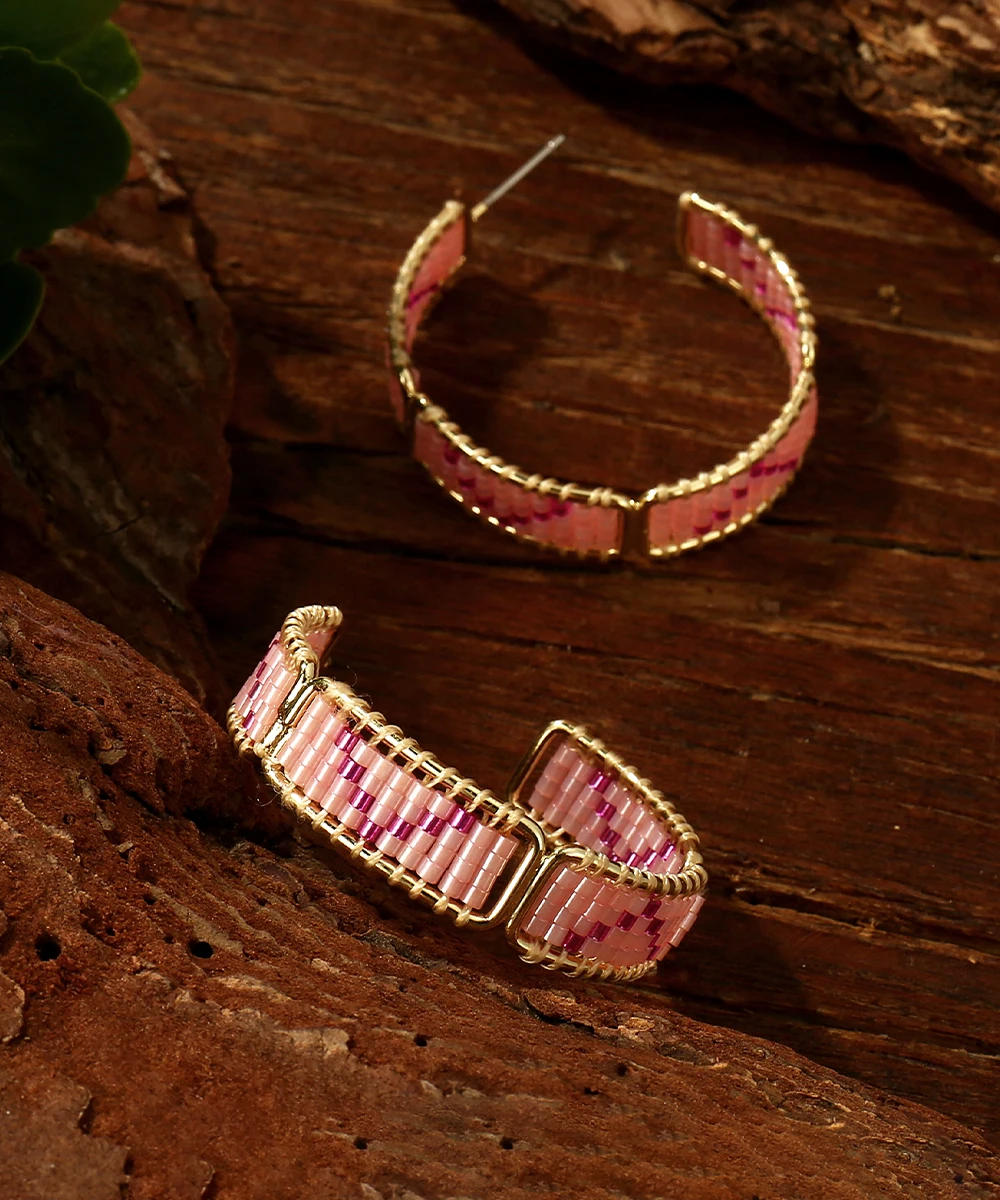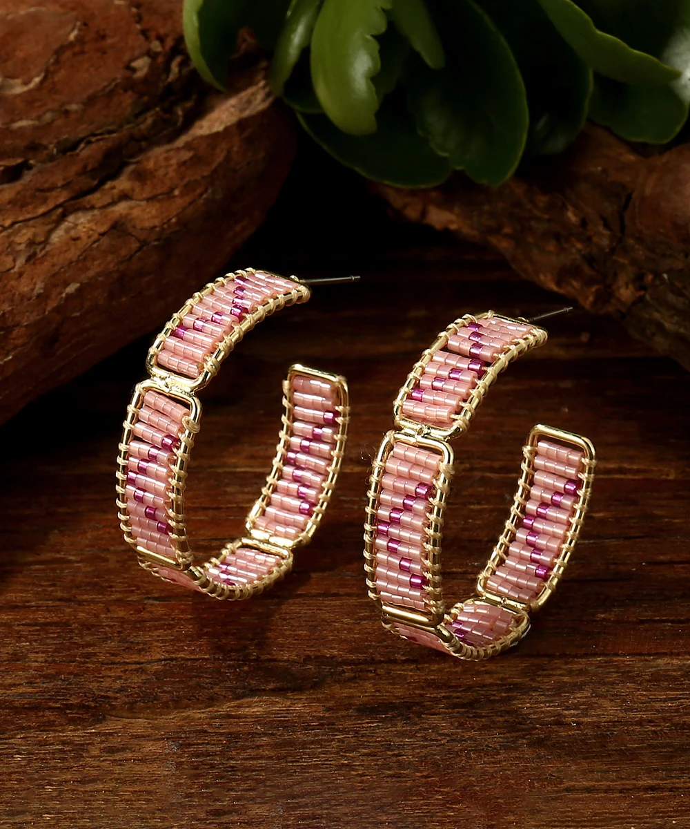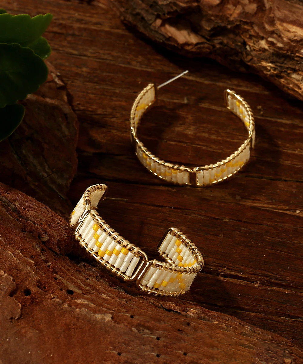 Retro Bohemia Chic Pattern Beaded Hoop Earrings for Women High Quality Miyuki Beads Earrings Jewelry
