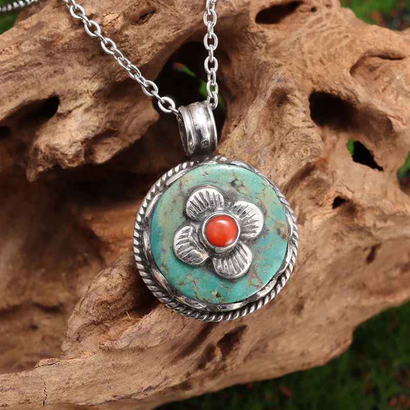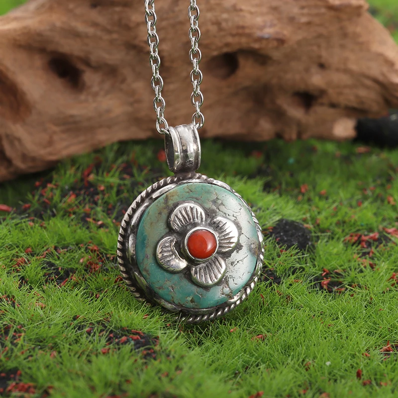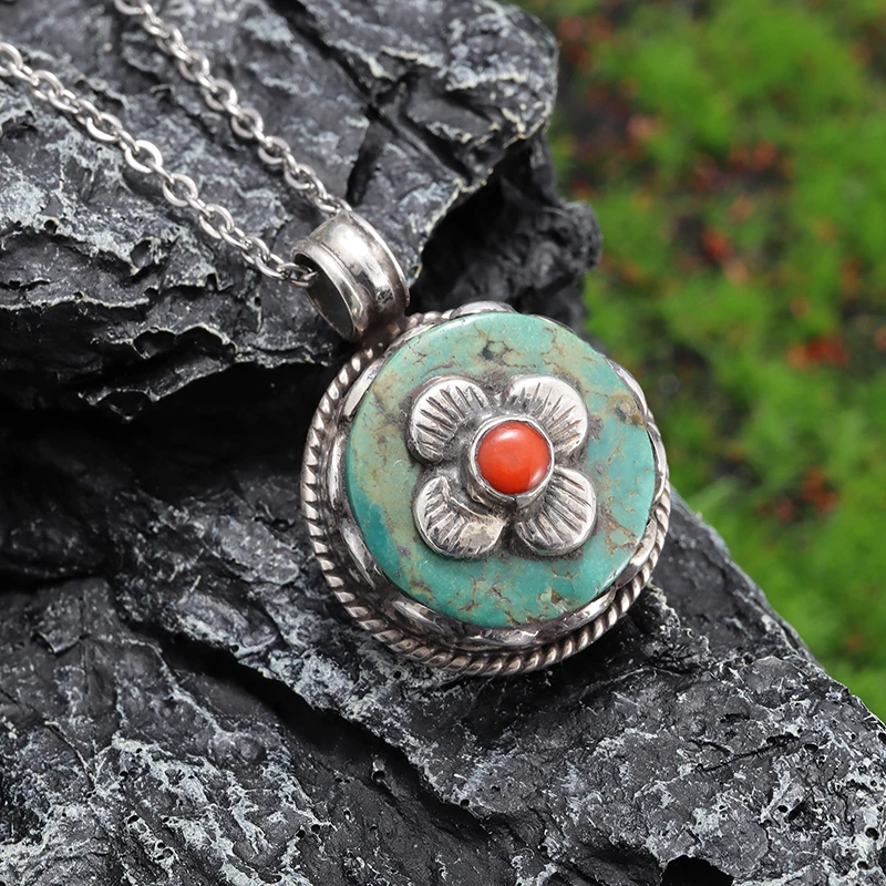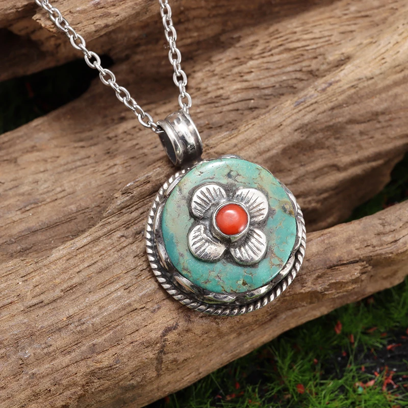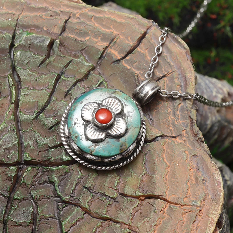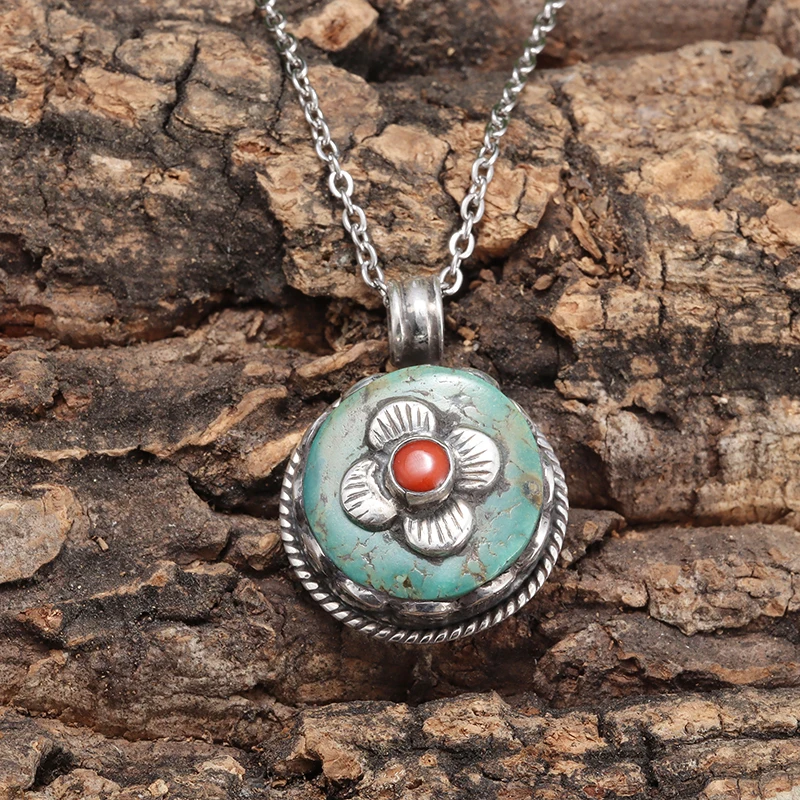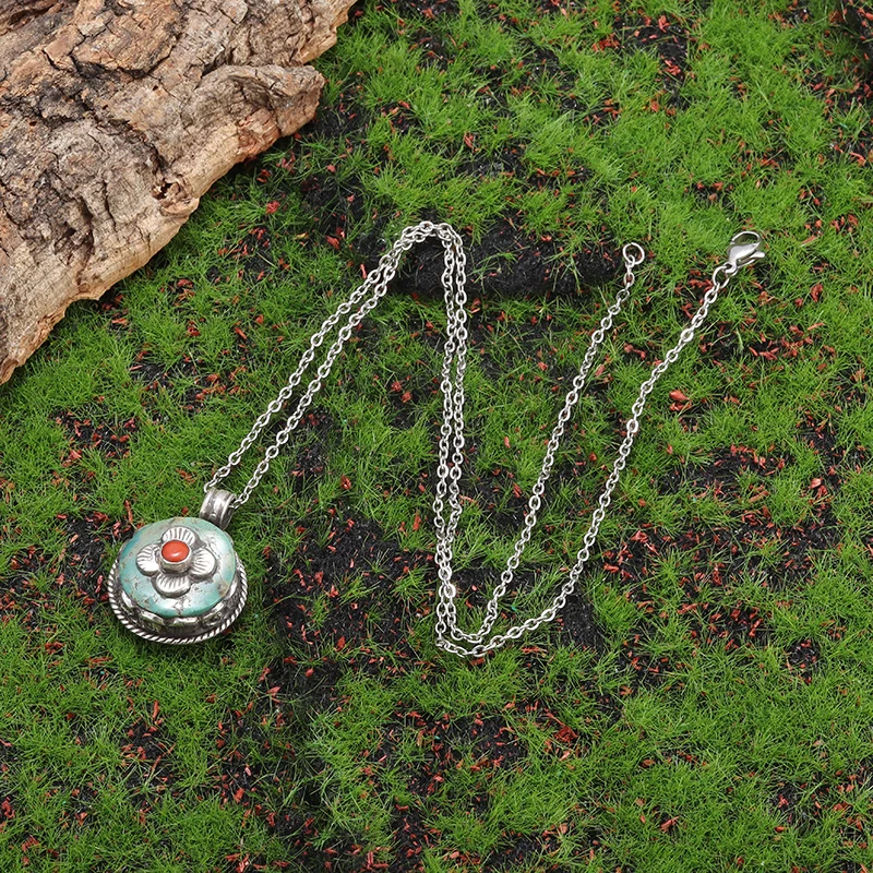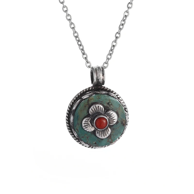 Retro Fashion Ethnic Style Ruby Petal Pendant Necklace Women's Elegant Palace Style Ball Jewelry Gift