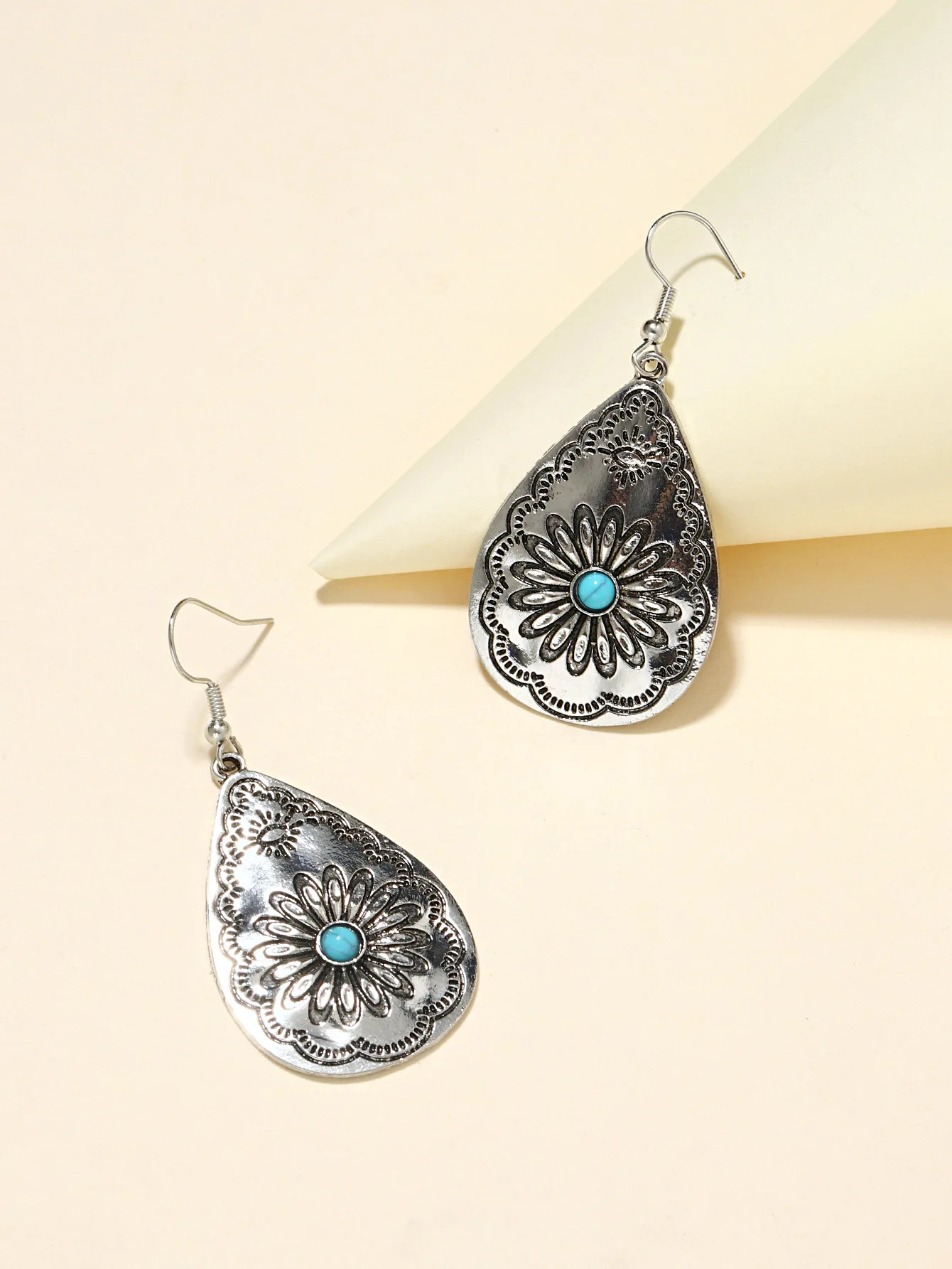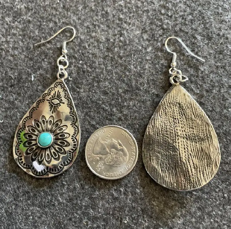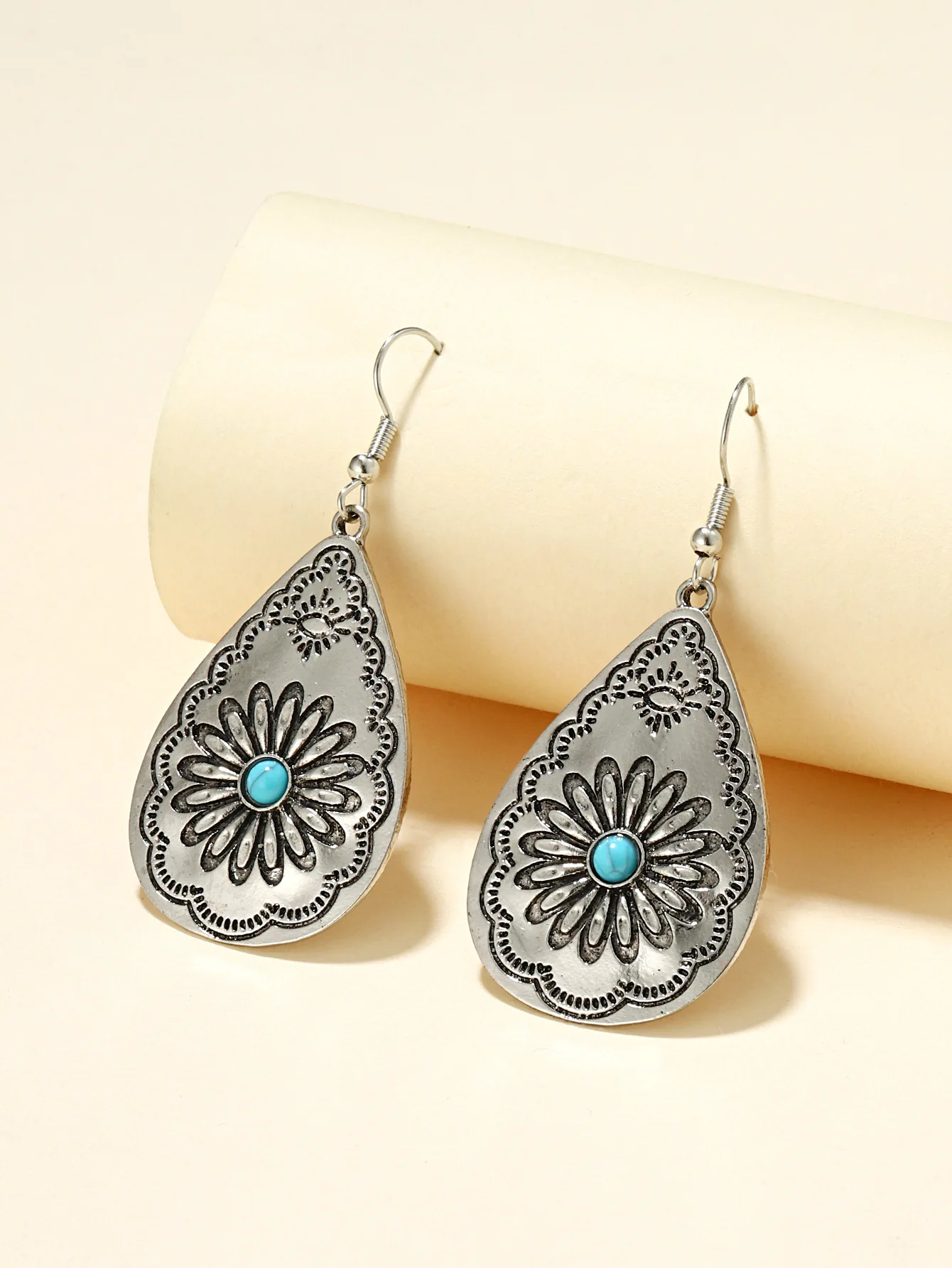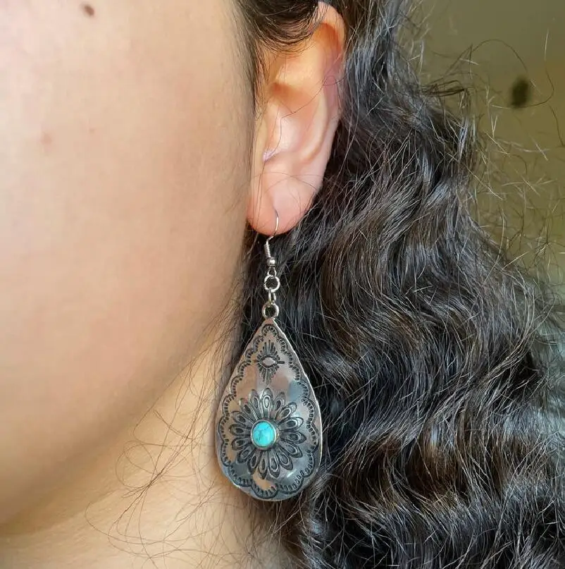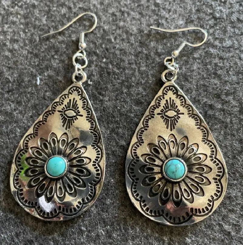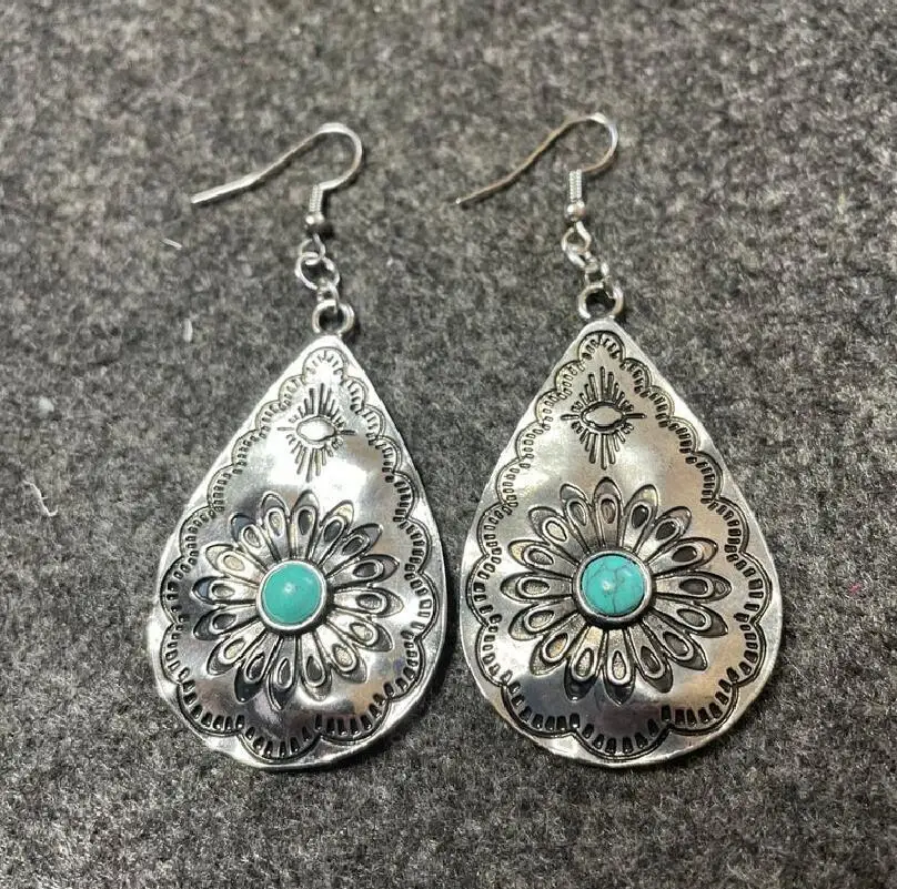 Retro Style Drop-shaped Women's Earrings European and American Drop-shaped Sunflower Turquoise Carved Earrings