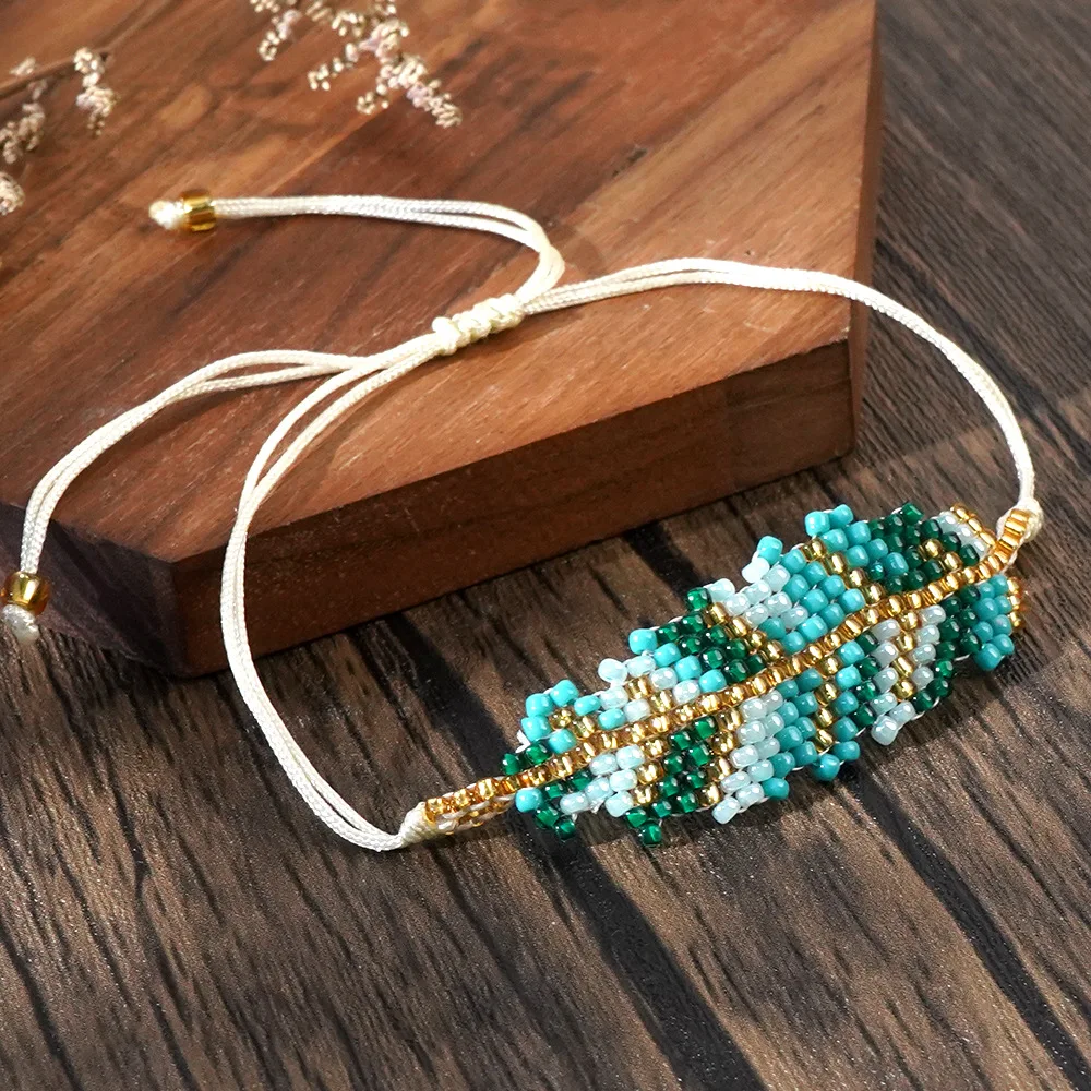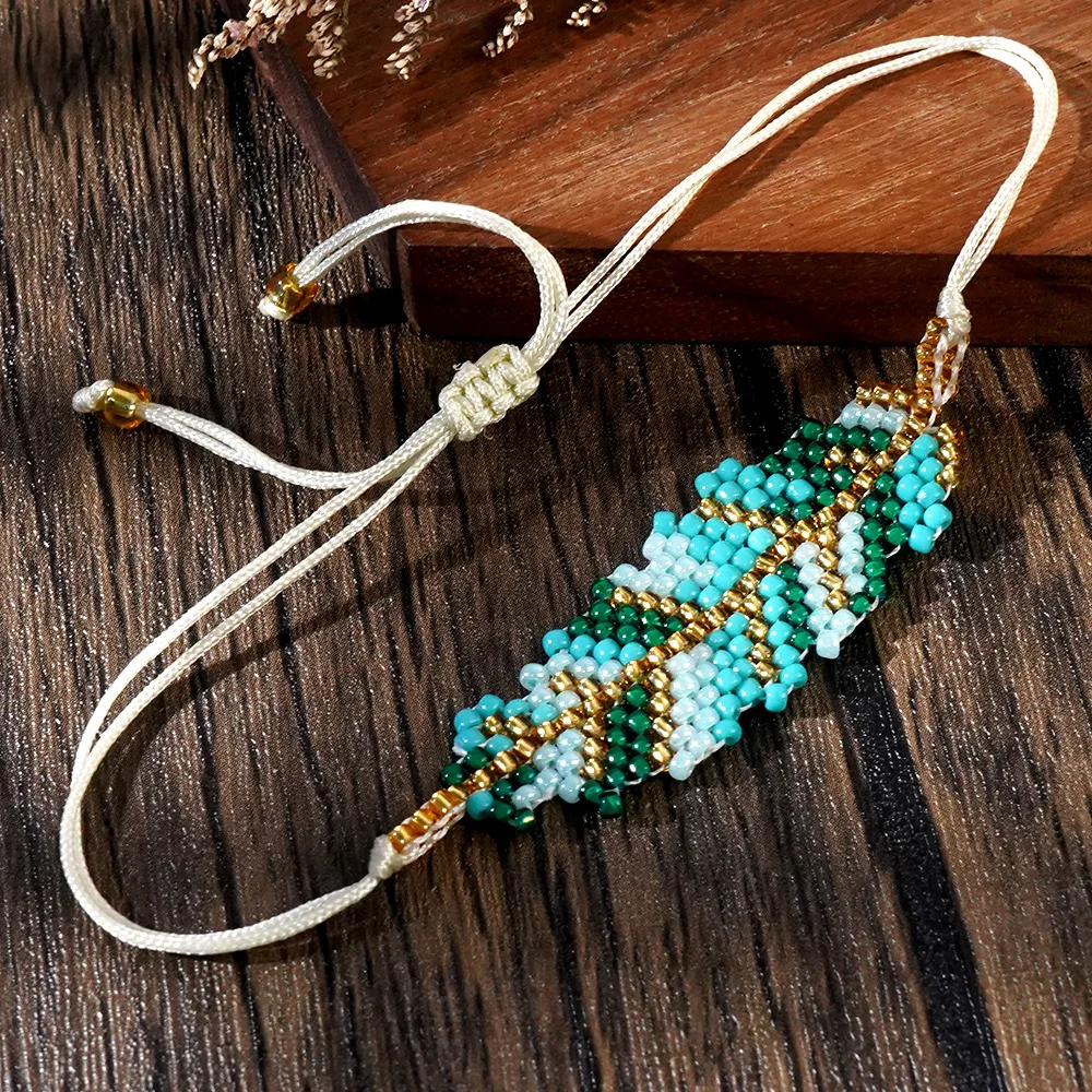 Rice bead bracelet Originality Leaf Design Hand knitting Bohemia Adjustable Fashion Simple Beaded bracelet
