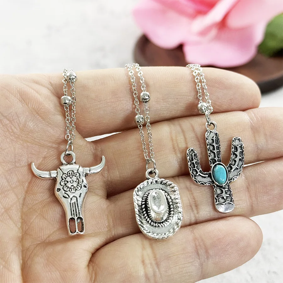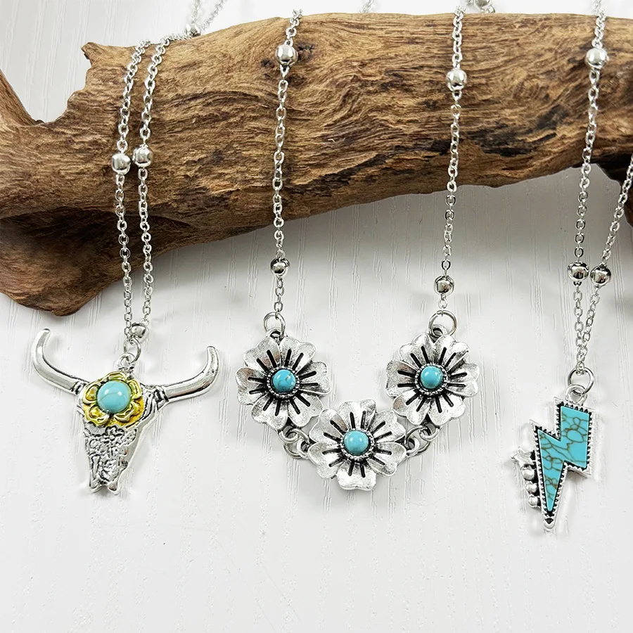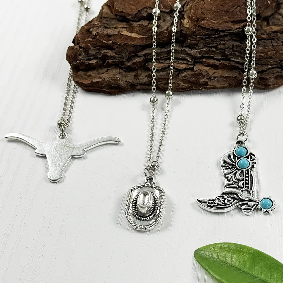Set 3 Turquoise Western-Style Necklaces Boots Women's Bohemia Jewelry Link for Cowgirl Cowboy Outfit Includes 3Pcs Jewelry for