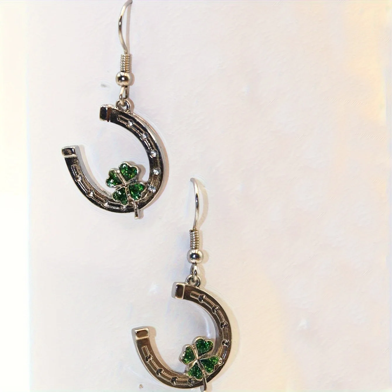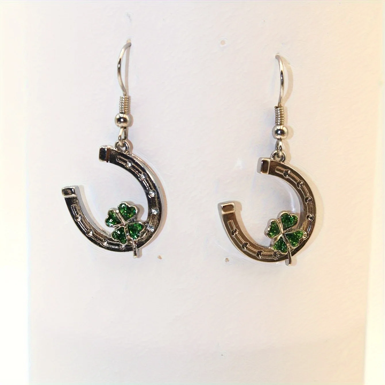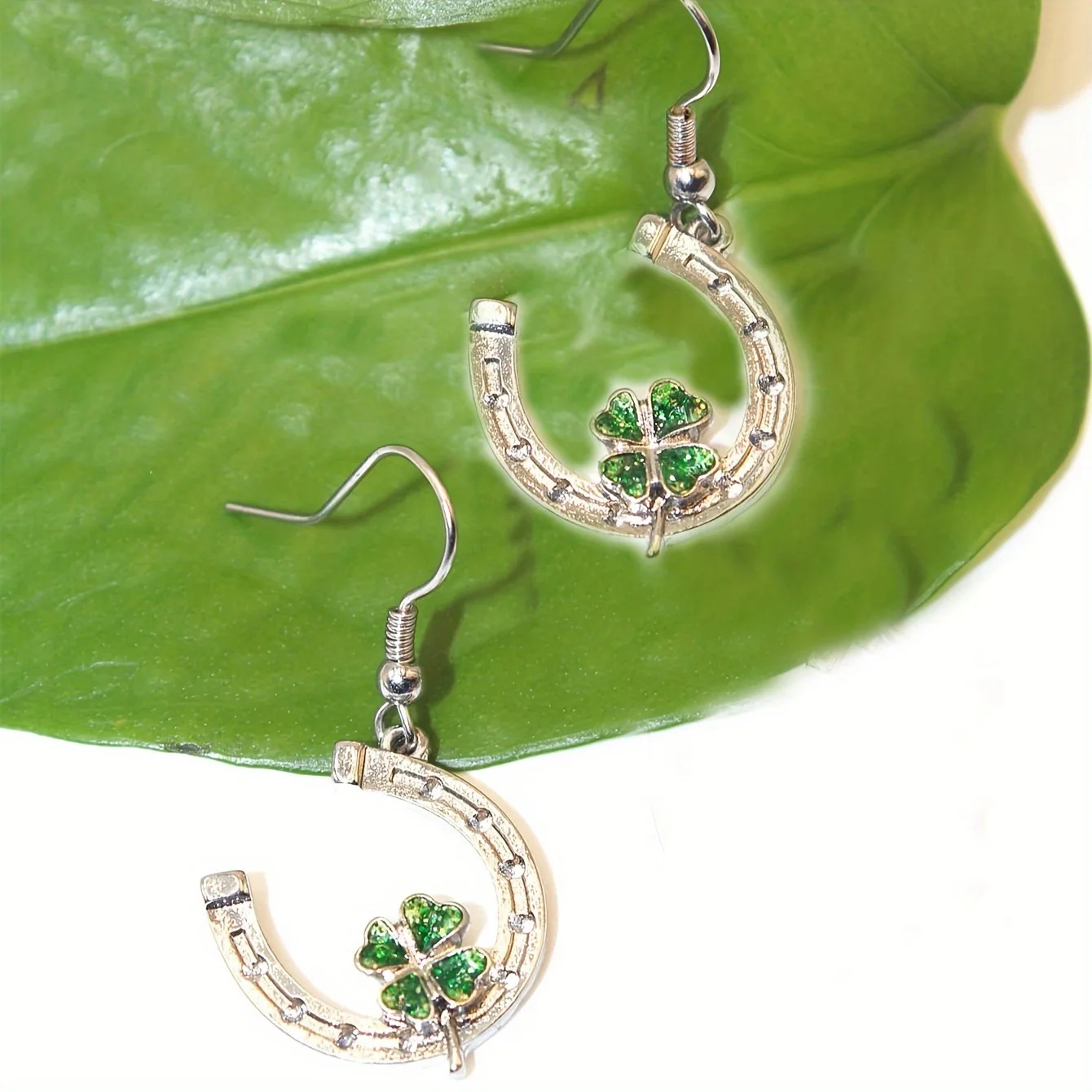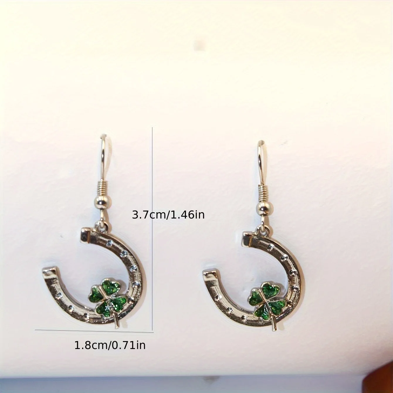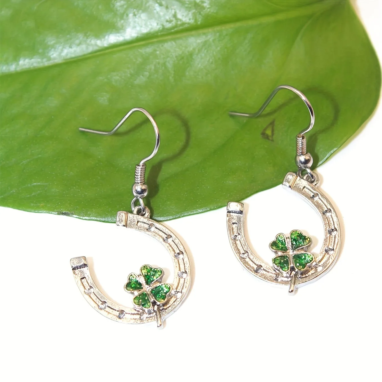Shamrock Earrings Enamel Clover and Horseshoe Metal Irish Dangle Drop Earrings for Women St Patrick's Day Fashion Accessories