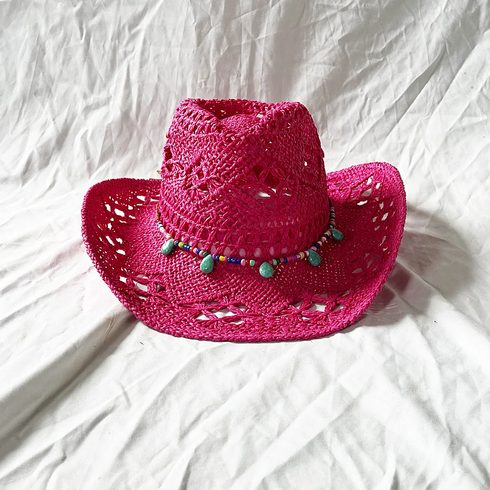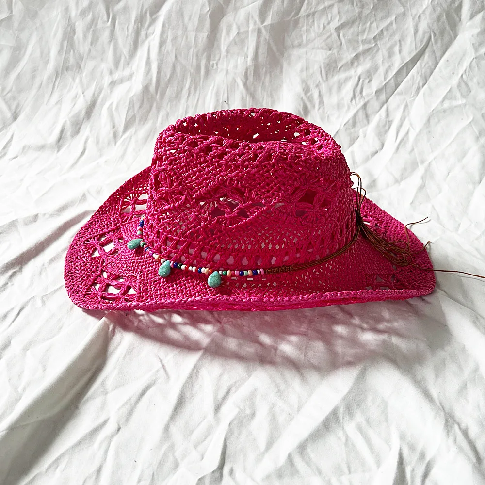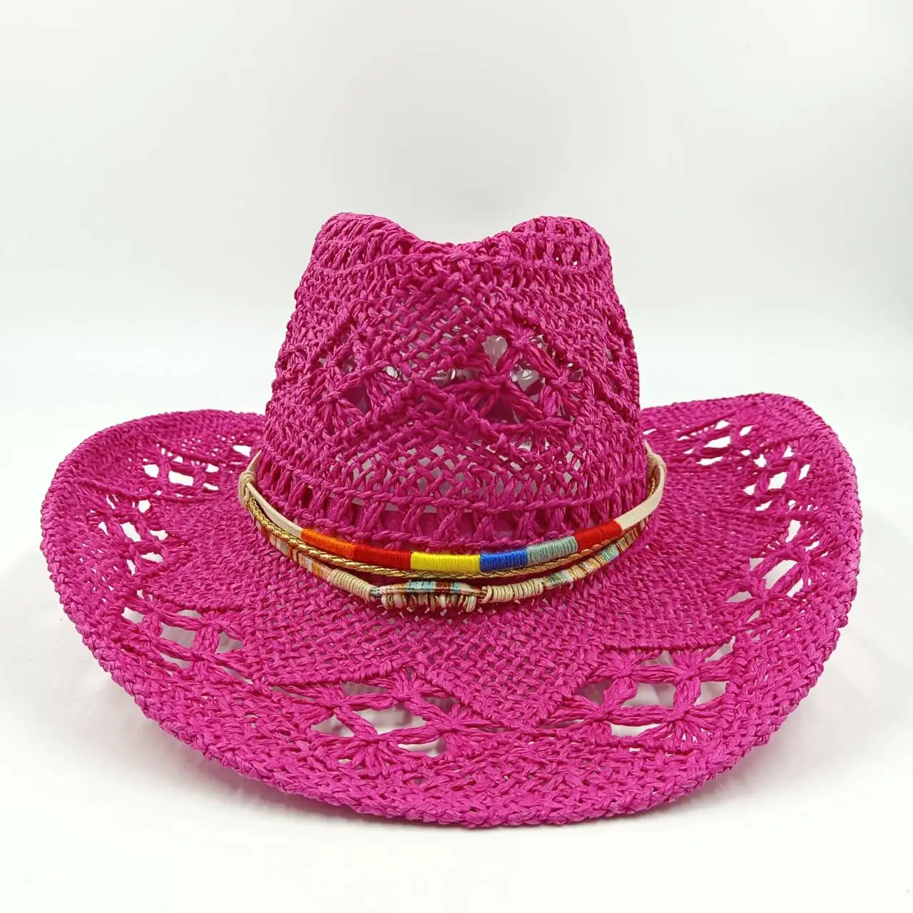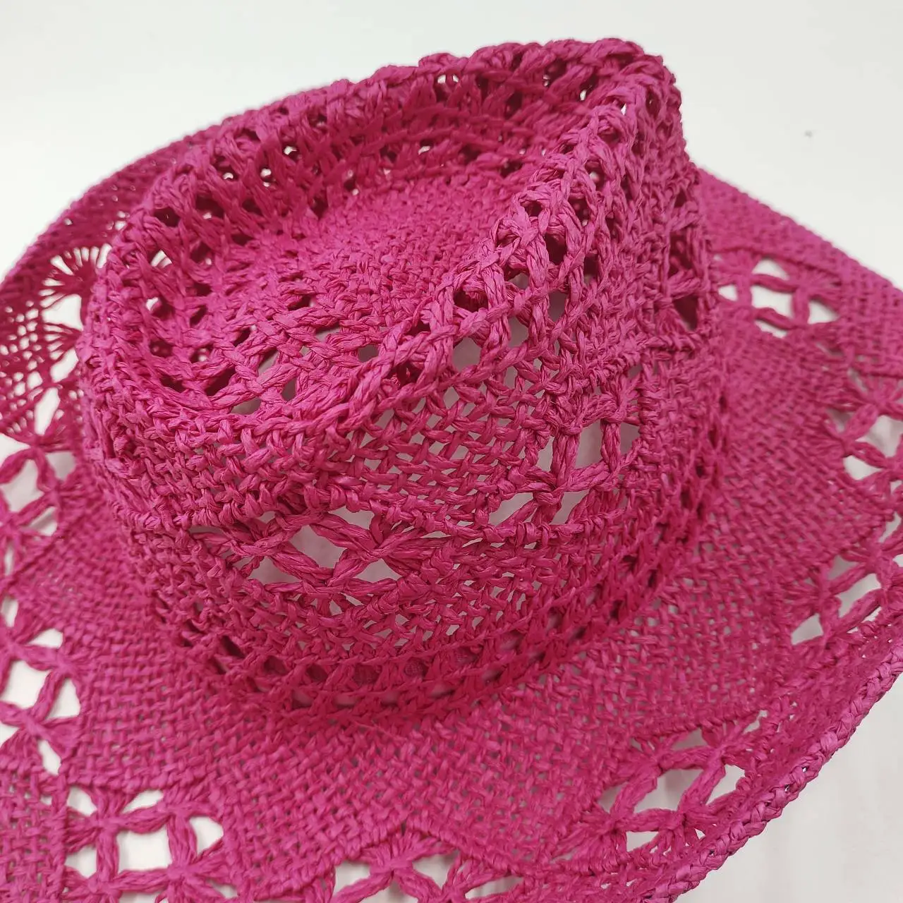 The latest Cowboy hat rose red retro straw hat 2023 new men's and women's jazz Cowboy hat straw hat sun hat summer hat sombrero