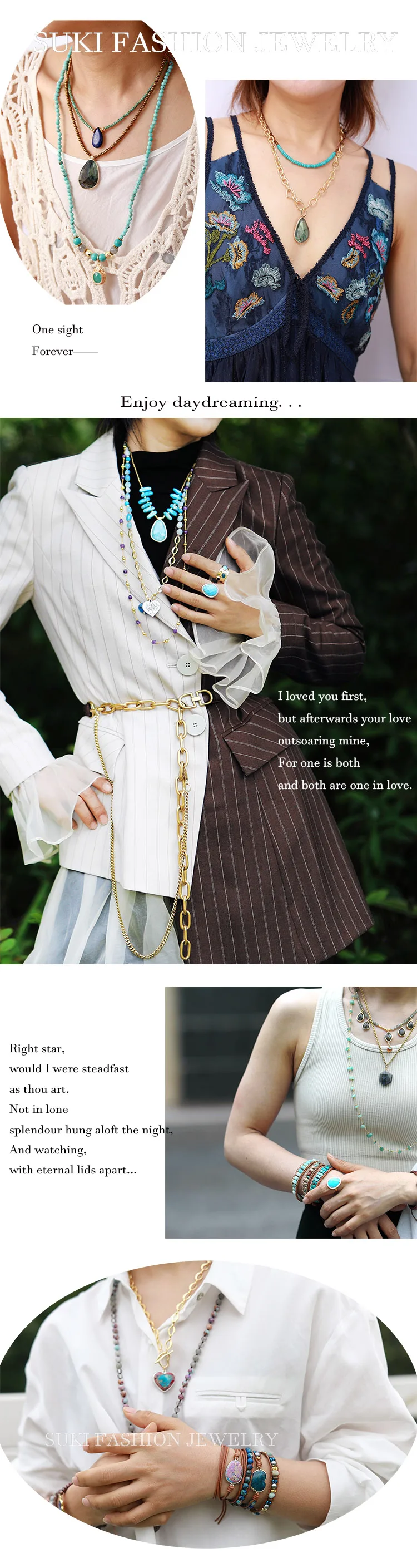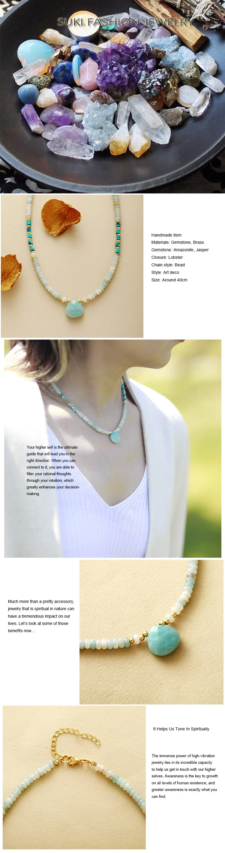 Trendy Minimalism Stones Amazonite Choker Necklace Designer Women Strand Collar Necklaces Boho Jewelry Bijoux