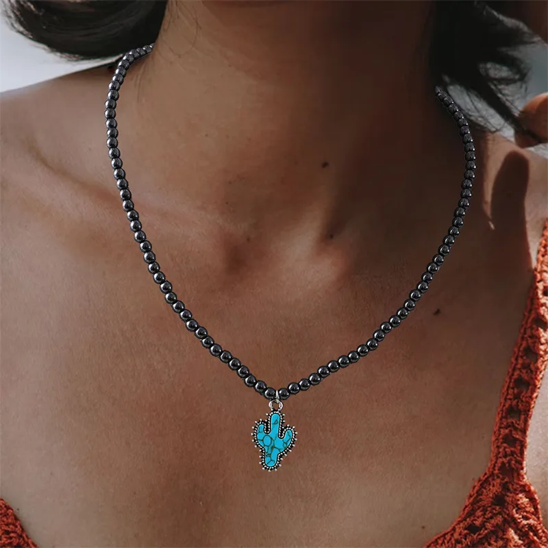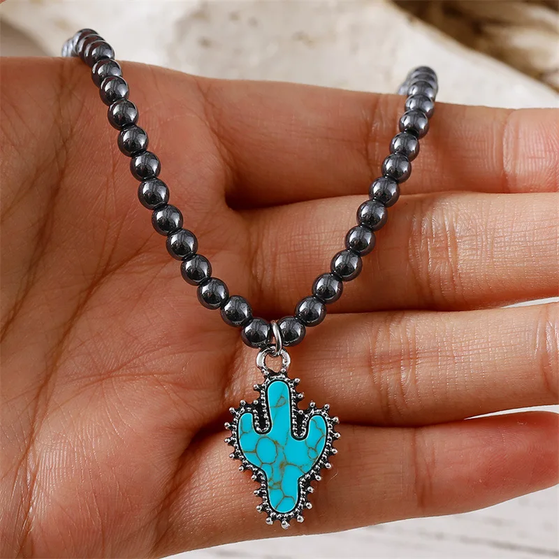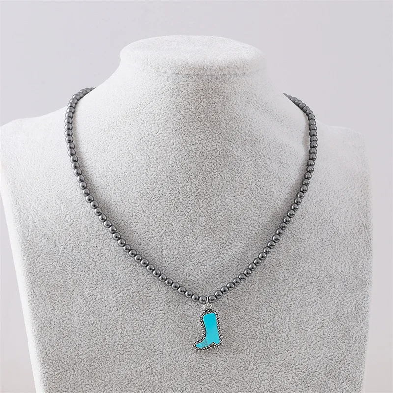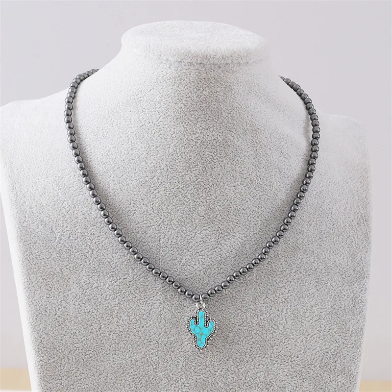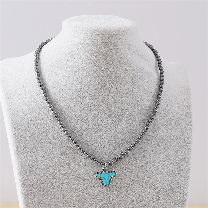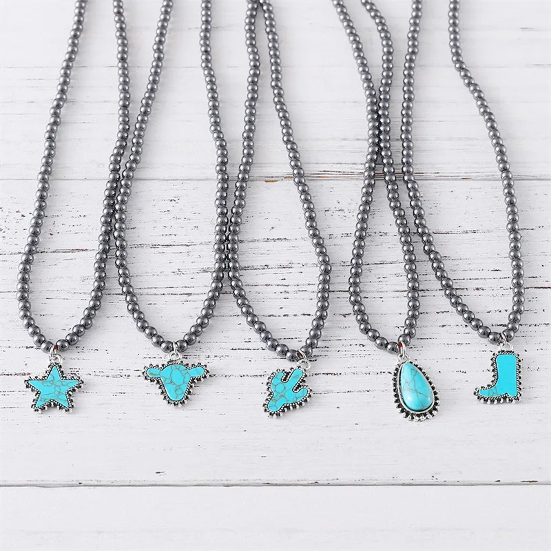 Turquoise Squash and Faux Pearl Choker Necklace Cactus/Cowboy Boot/Star/ Steer Bull Head Choker Necklace for Women Navajo Style