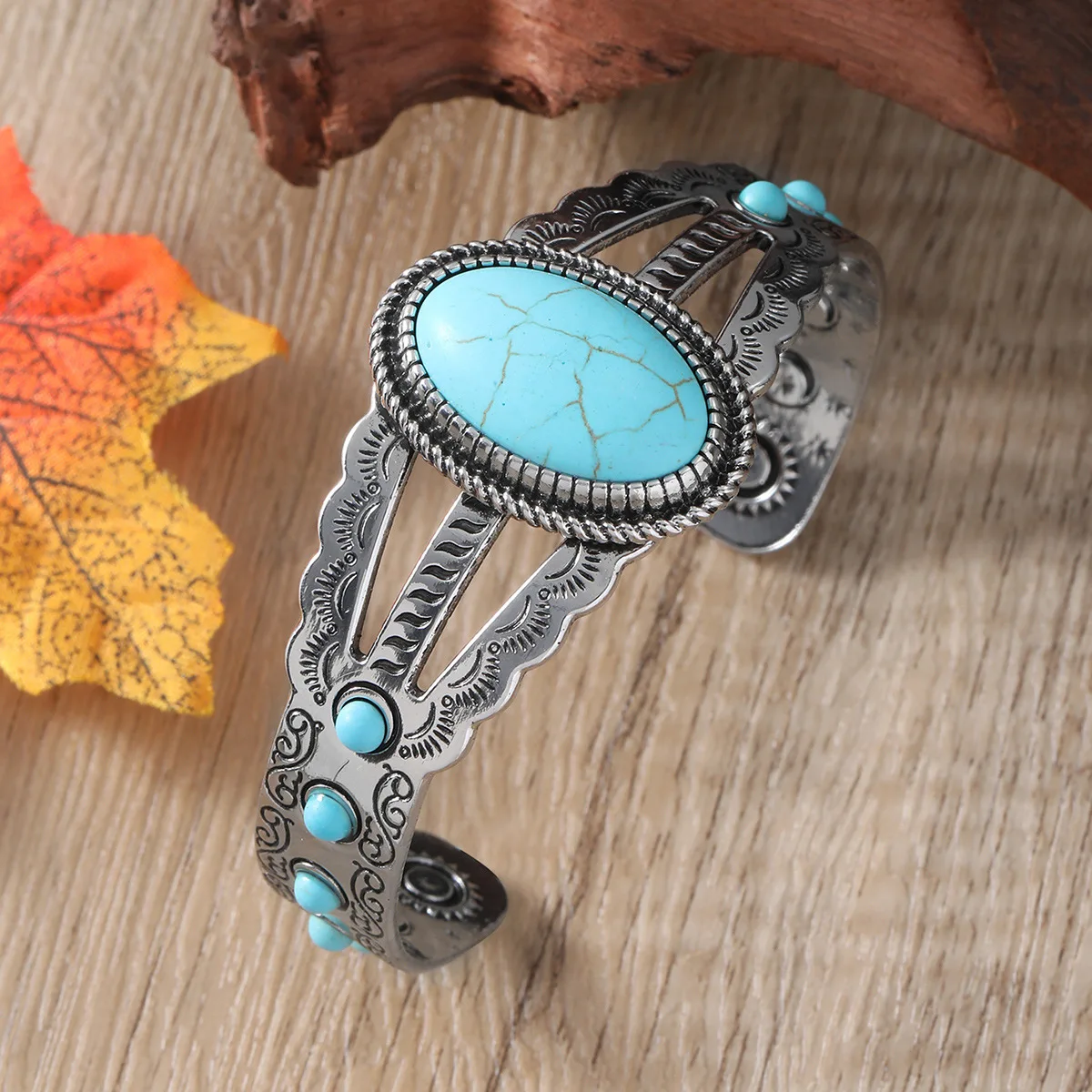 Turquoise Stone Bracelet for Women Retro Party Western Style Jewelry Turquoise Cuff Bracelet Adjustable BRA001370