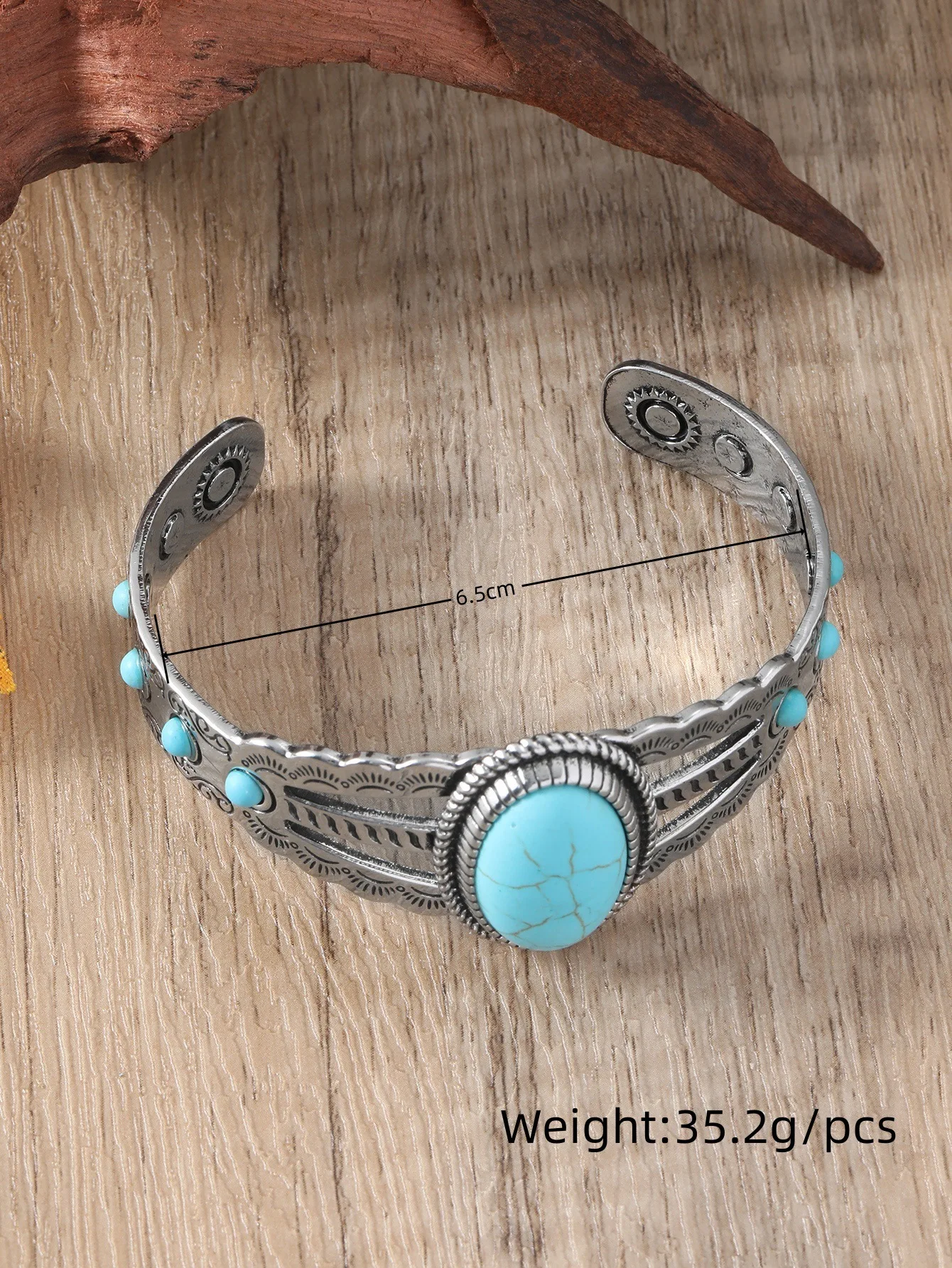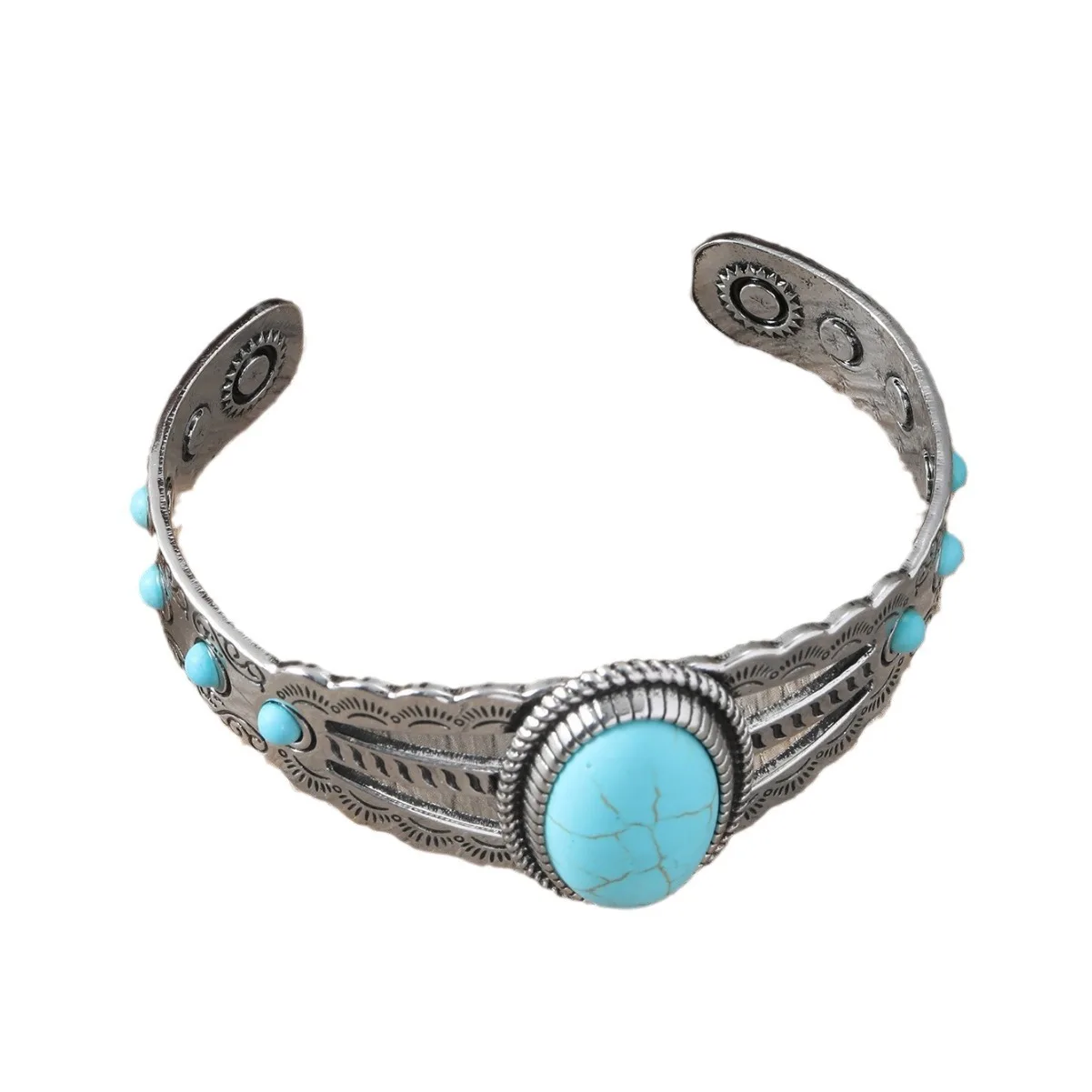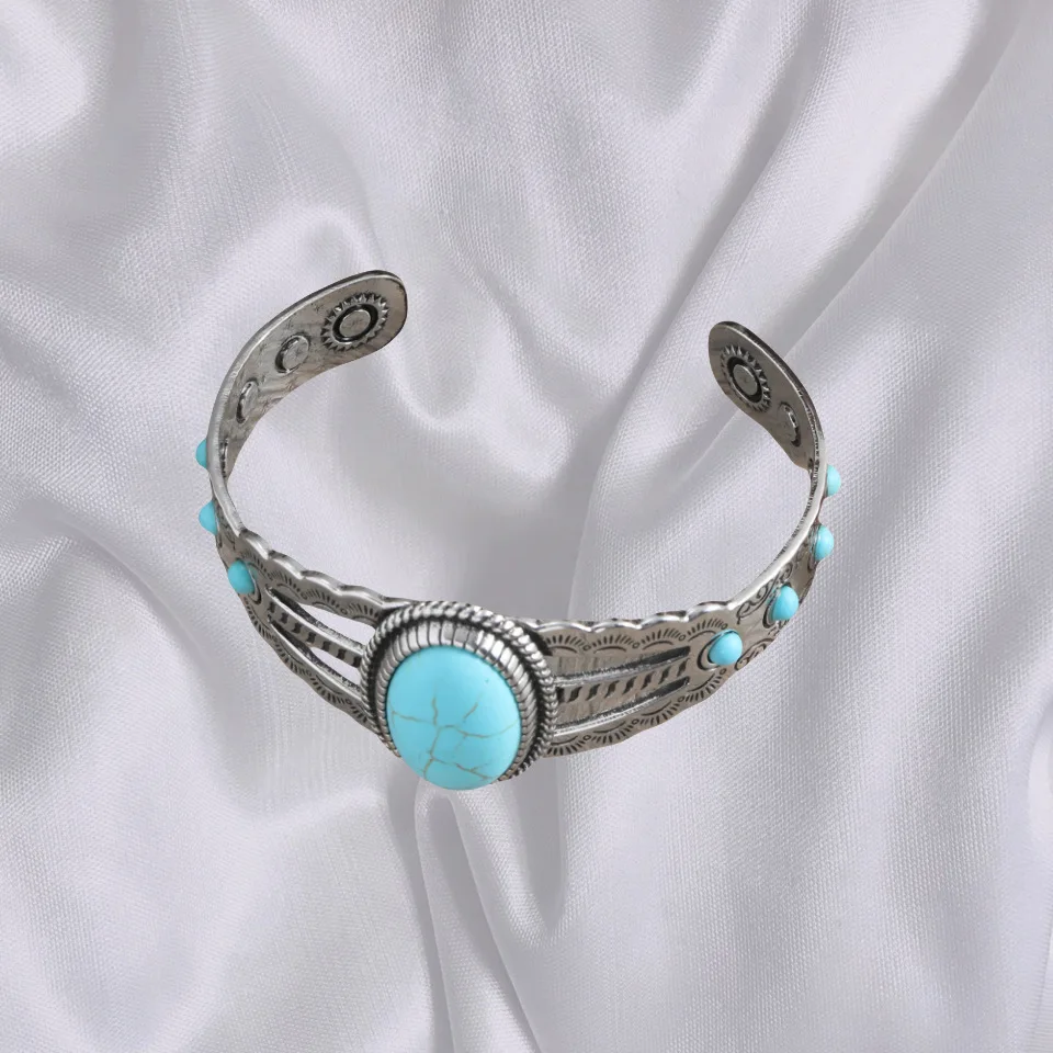 Turquoise Stone Bracelet for Women Retro Party Western Style Jewelry Turquoise Cuff Bracelet Adjustable BRA001370 6.5cm