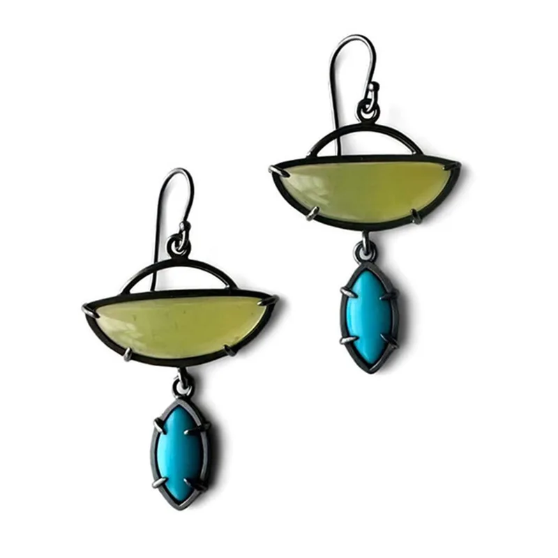 Vintage Black Color Boho Oval Blue Green Stone Carving Dangle Earrings for Women Jewelry