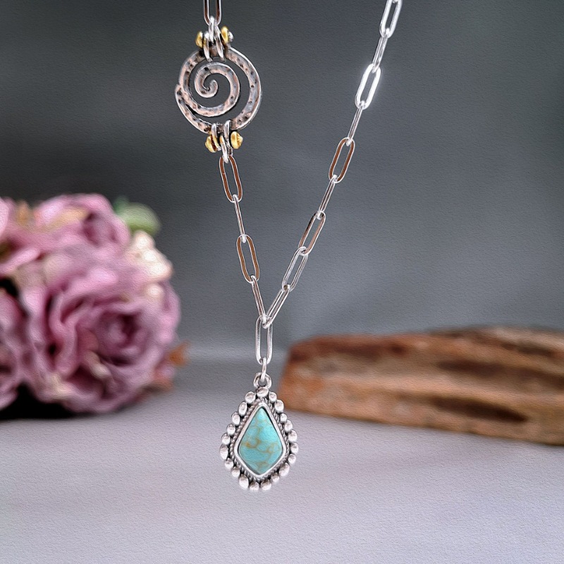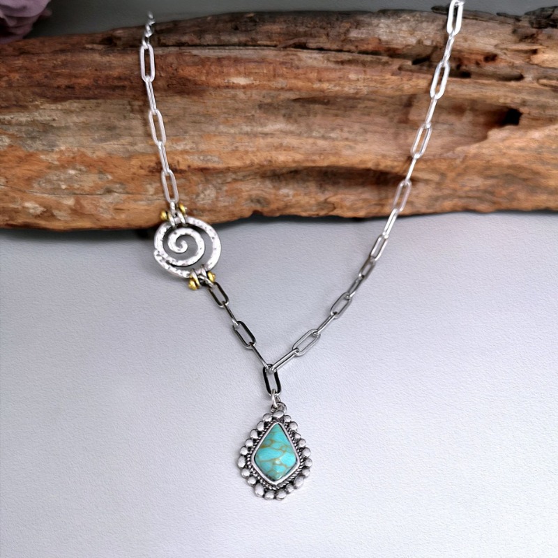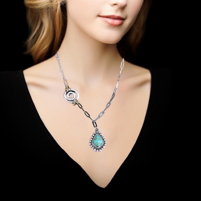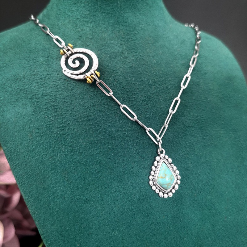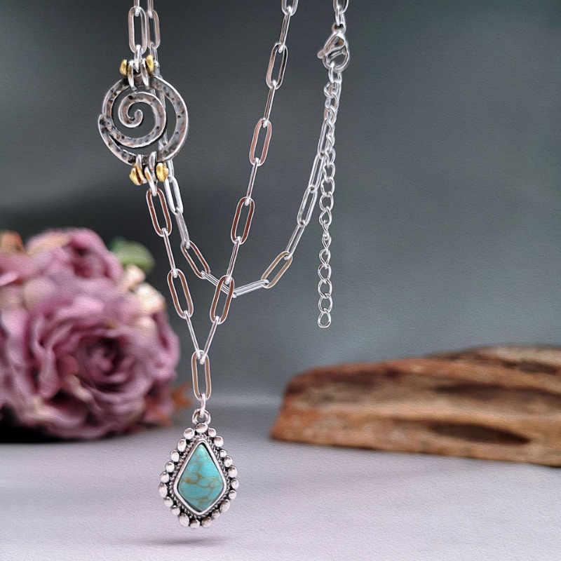 Vintage Geometry Natural Turquoise Pendant Necklaces for Women Ethnic Style Luxury Jewelry Anniversary Gift 2023 New Accessories