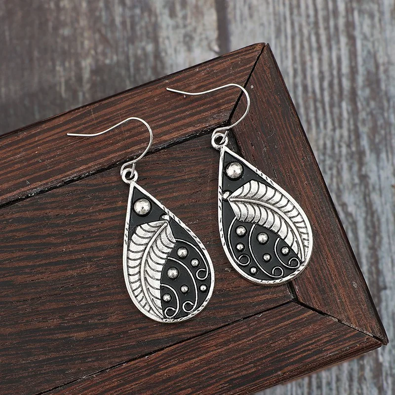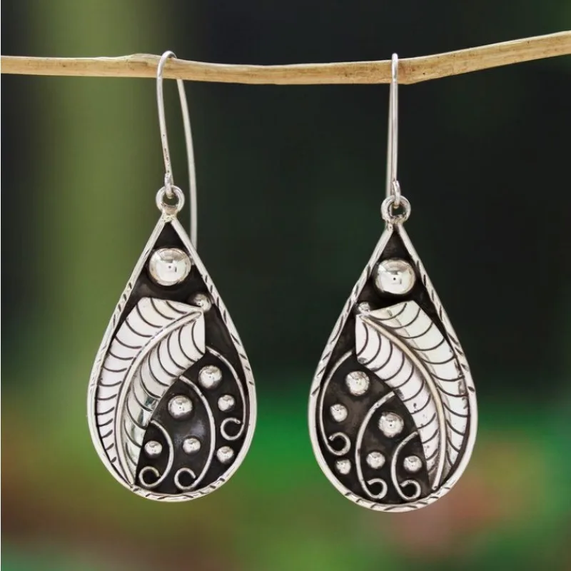 Vintage Waterdrop Inlaid Silver Color Leaf Earrings Geometric Creativity Silver Color Dangle Earrings for Women Jewelry