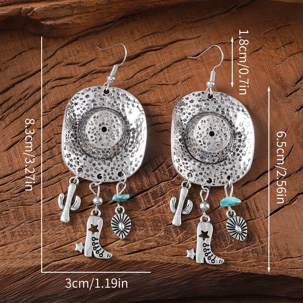 Western Earrings for Women Cowboy Boot and Hat, Southwestern, Pierced, Western Cowboy Hat Cowgirl Charm Dangle Earring 8.4*3cm