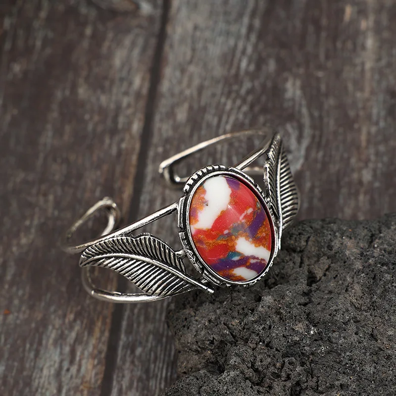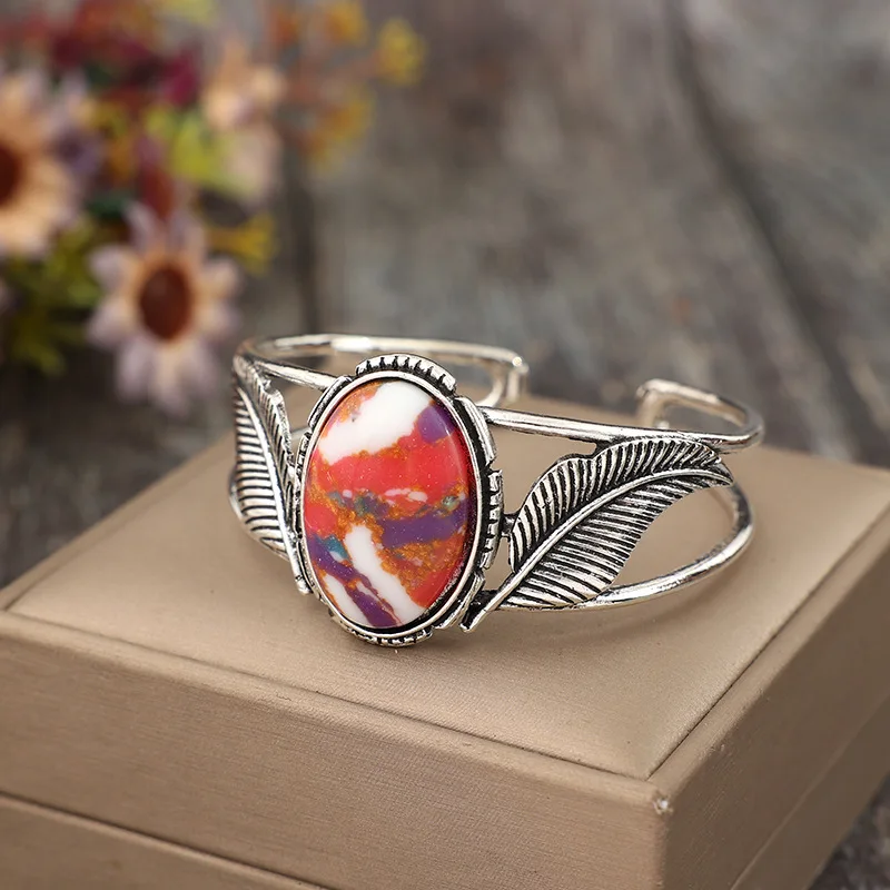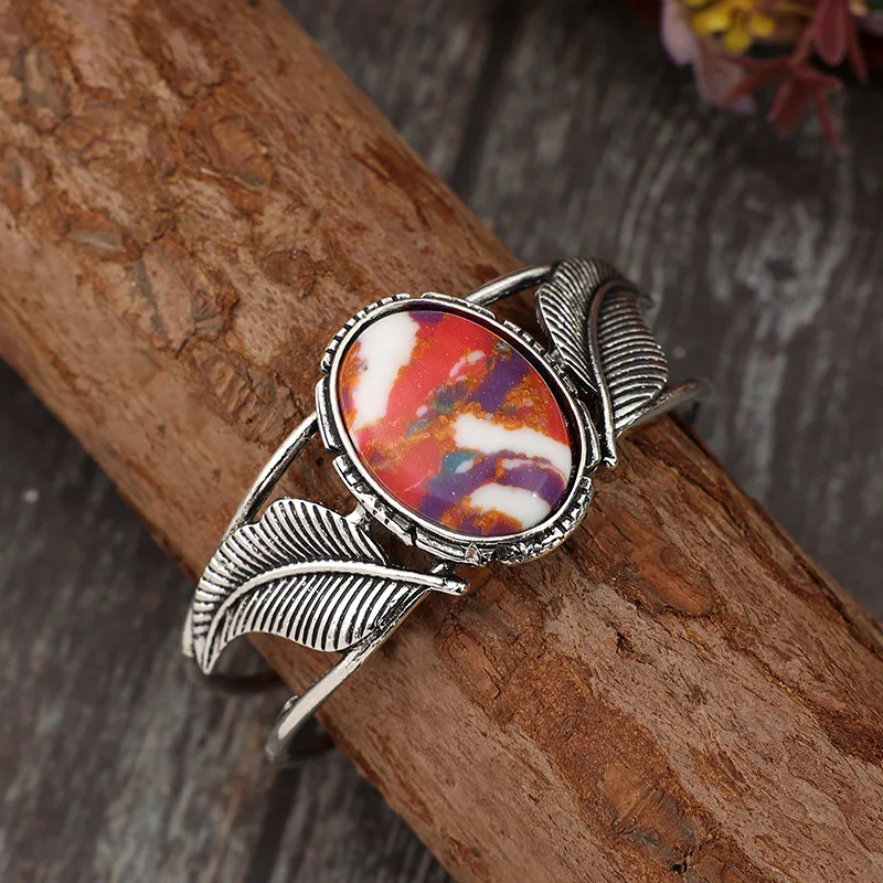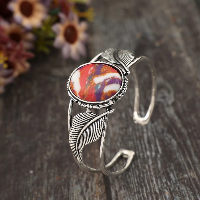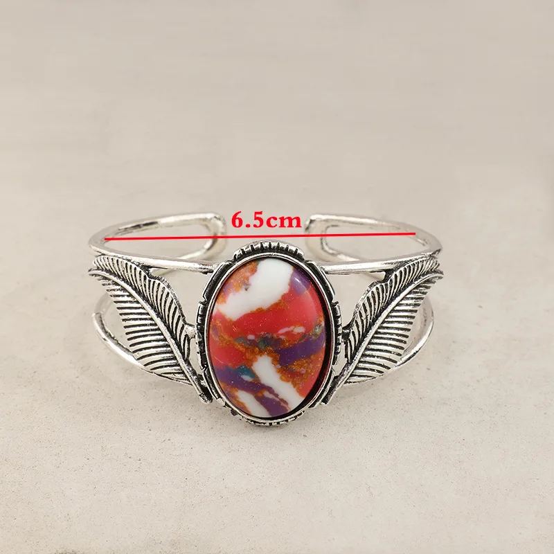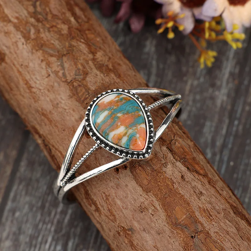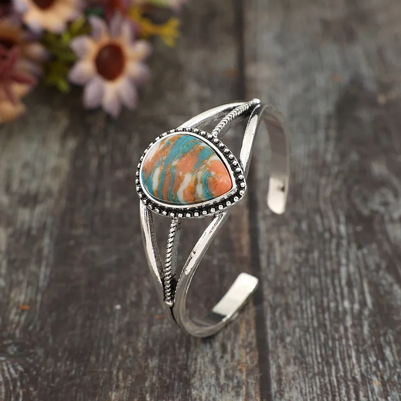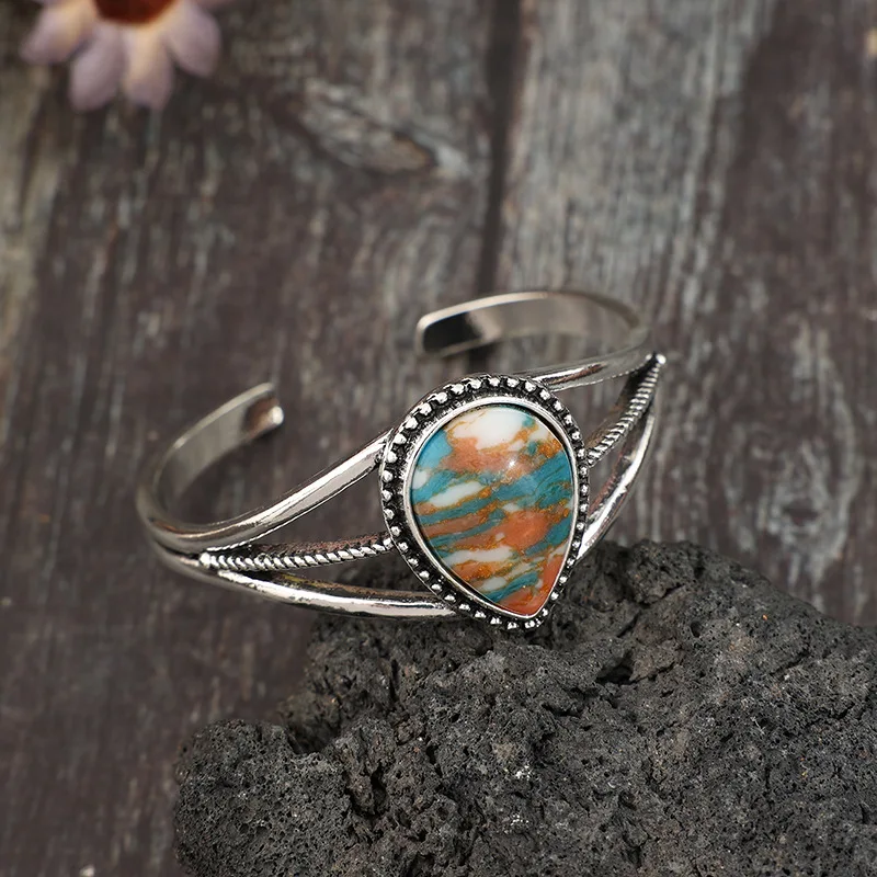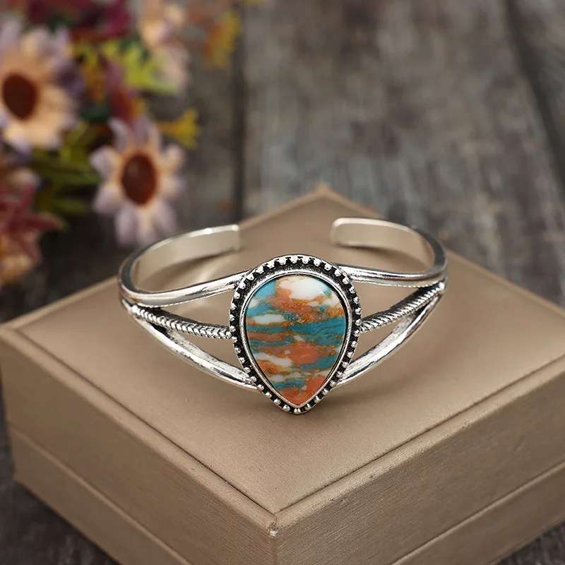 Women's Antique Turquoise Cuff Bangle Handmade Gemstone Cuff Bracelet Fashion Jewelry-BRAEAR200027