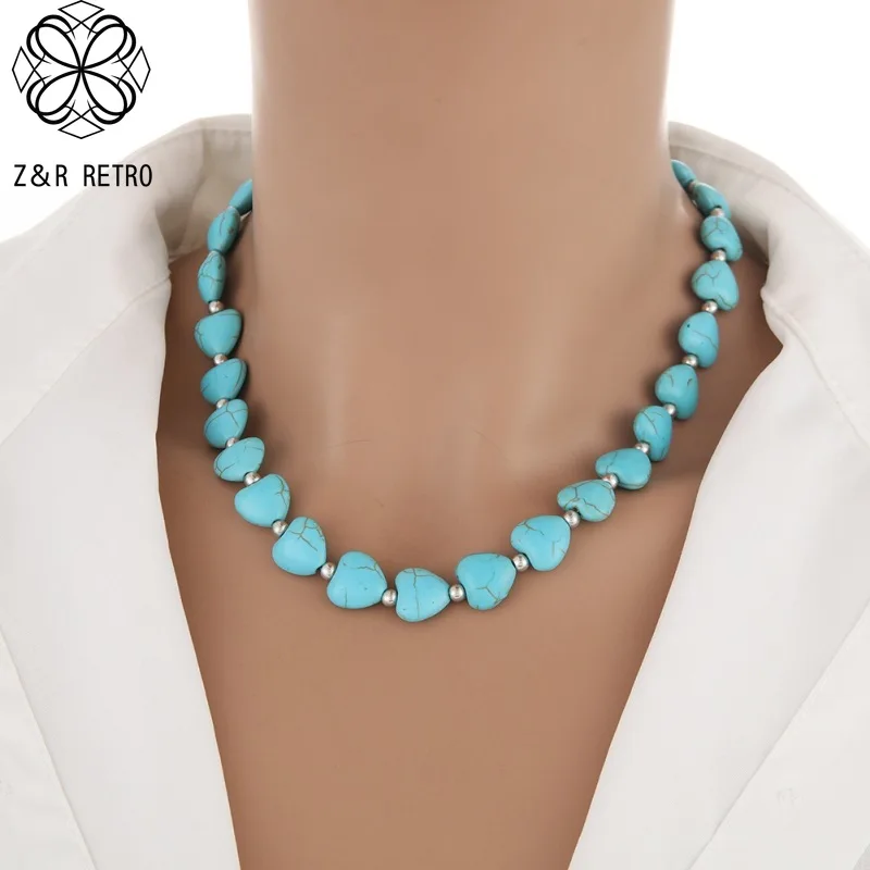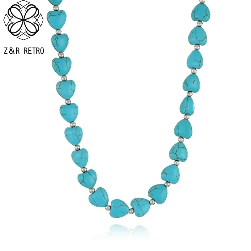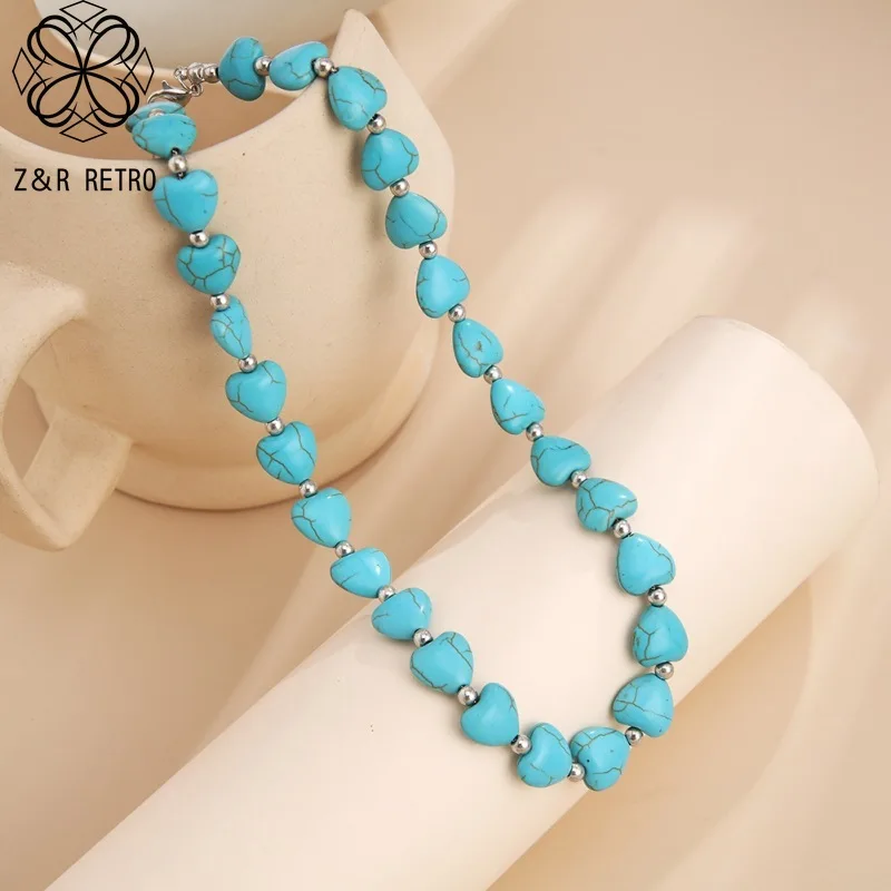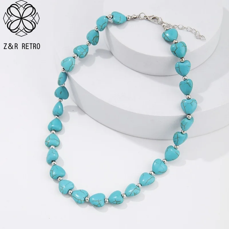 Women’s Boho Heart Beaded Turquoise-Look Clavicle Necklace Trendy Versatile Jewelry